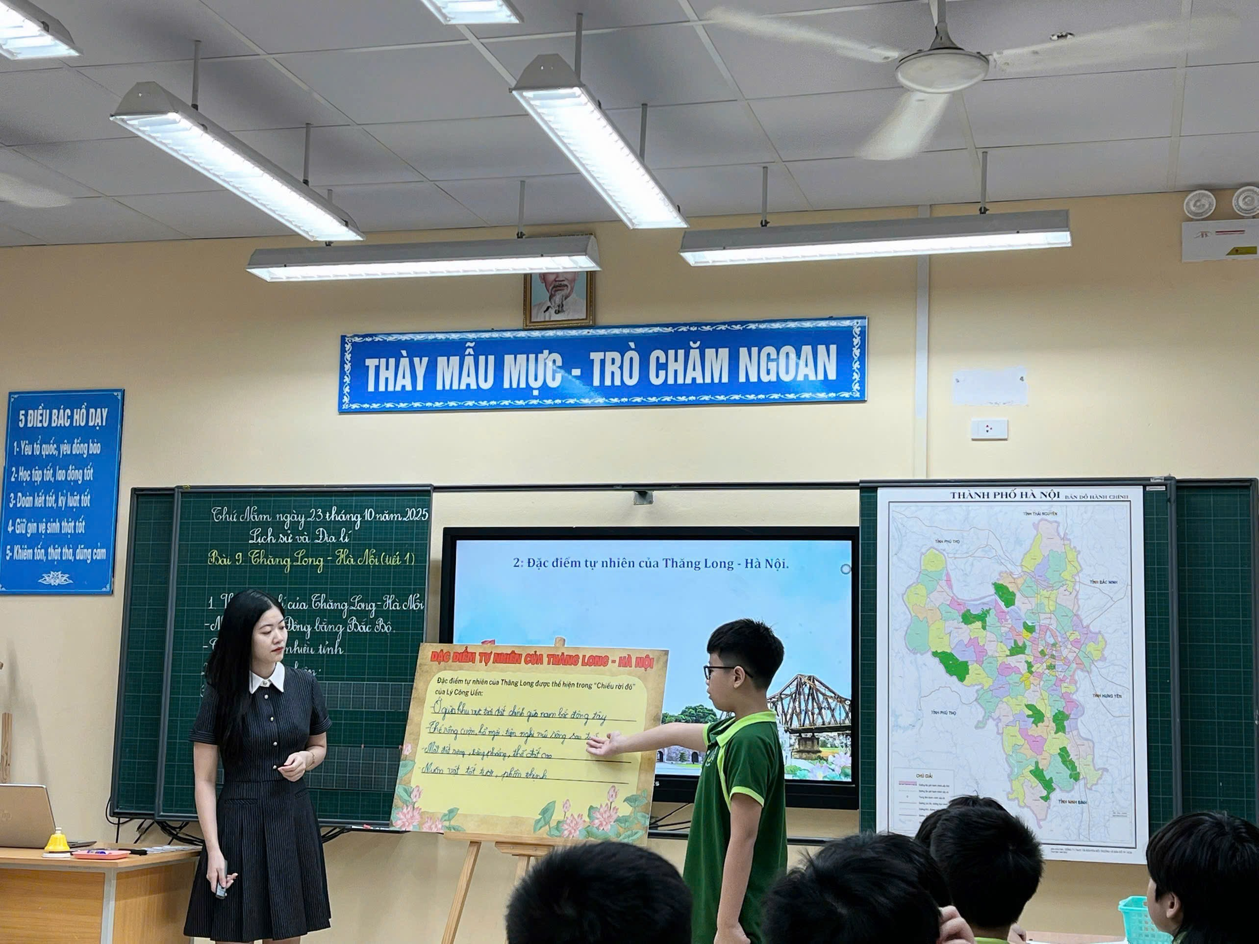 Bằng sự chuẩn bị công phu và tinh thần sáng tạo, cô đã dẫn dắt học sinh bước vào hành trình tìm hiểu về vị trí địa lí, đặc điểm tự nhiên và các tên gọi khác nhau của Thăng Long – Hà Nội – mảnh đất ngàn năm văn hiến, nơi hội tụ tinh hoa và tự hào dân tộc.