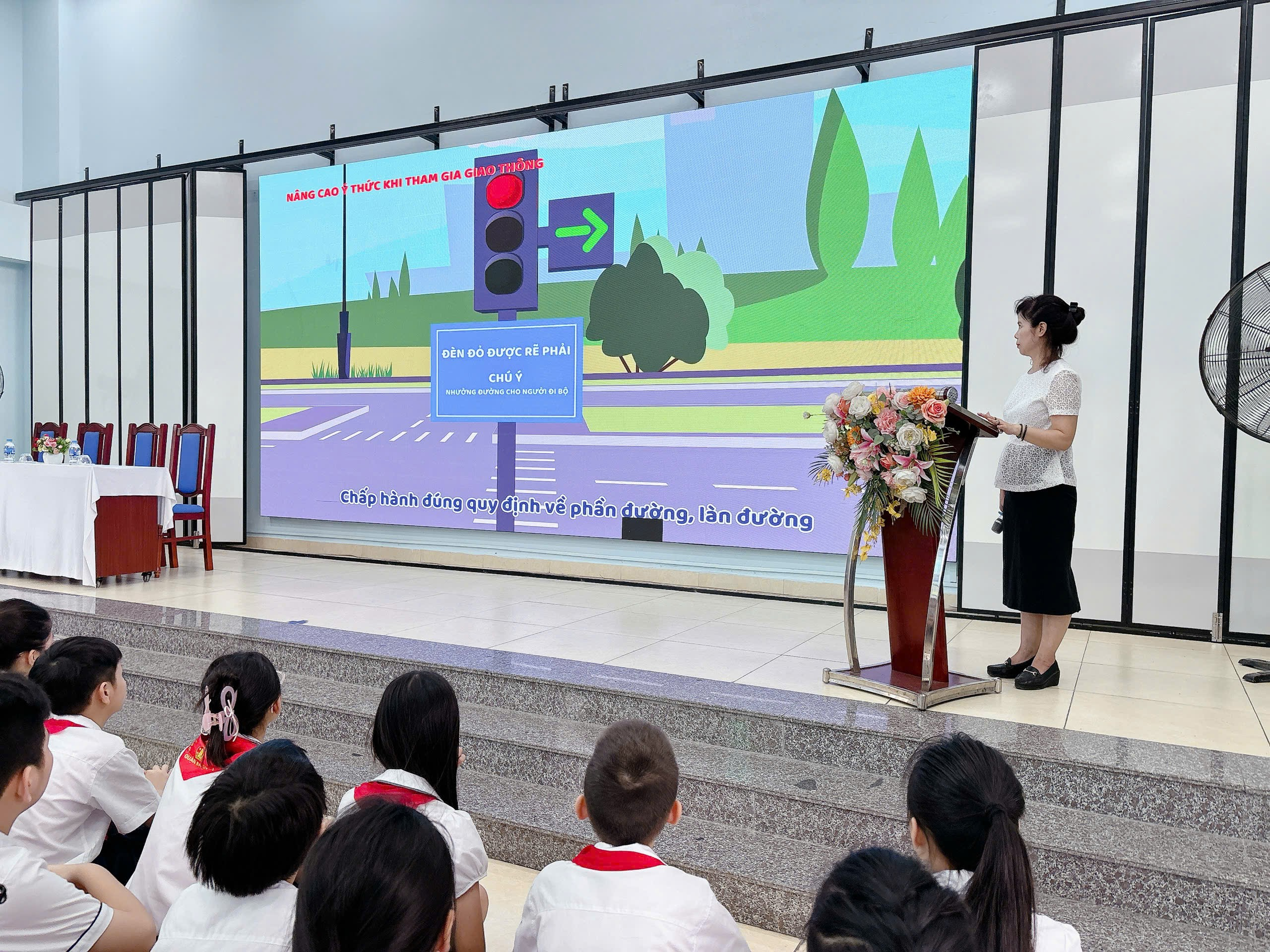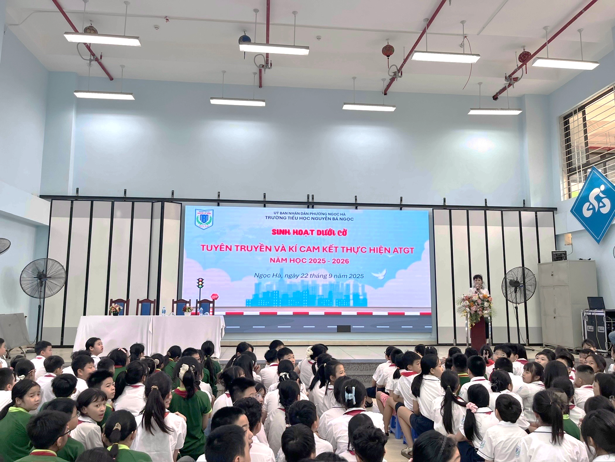 Tại buổi lễ, thầy và trò Trường Tiểu học Nguyễn Bá Ngọc đã được xem những thước phim sinh động, gần gũi và cùng nhau lắng nghe tuyên truyền về các quy định cơ bản của Luật Giao thông đường bộ, qua đó khắc sâu thêm kiến thức, nâng cao ý thức khi tham gia giao thông.