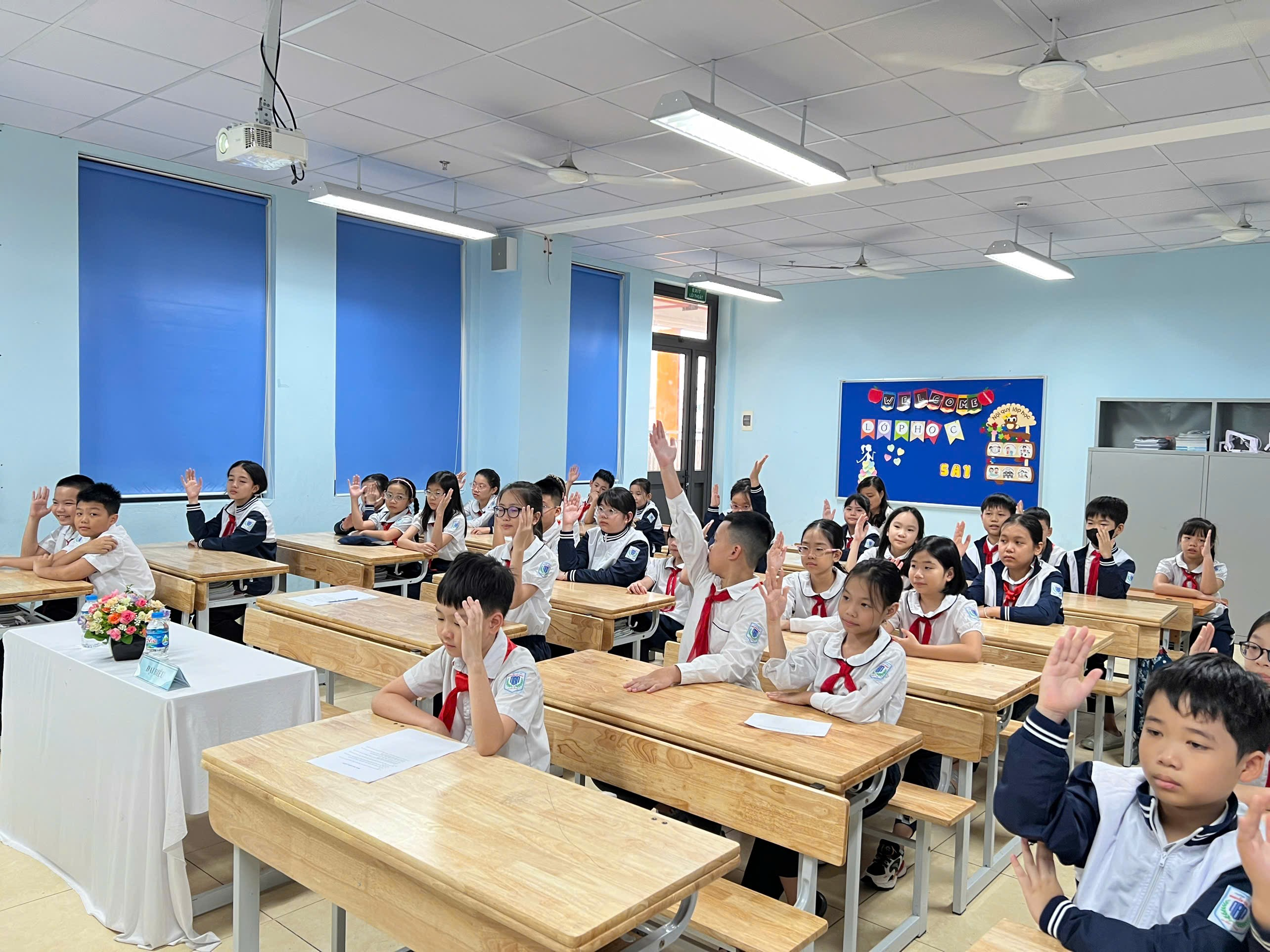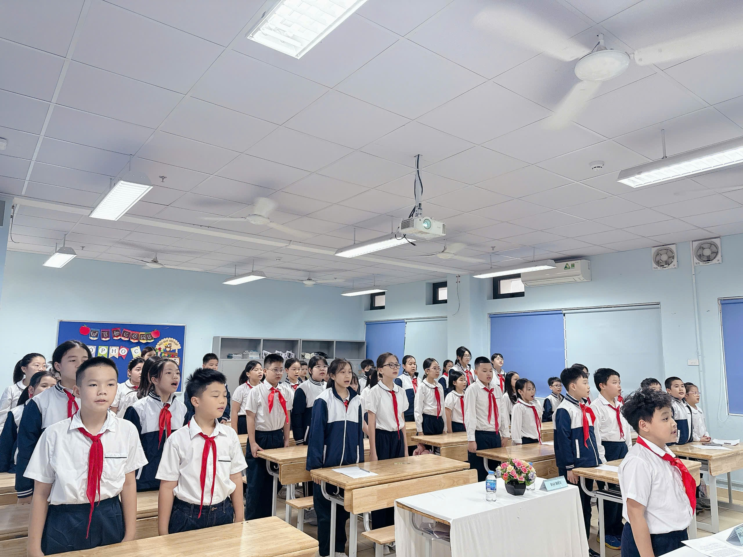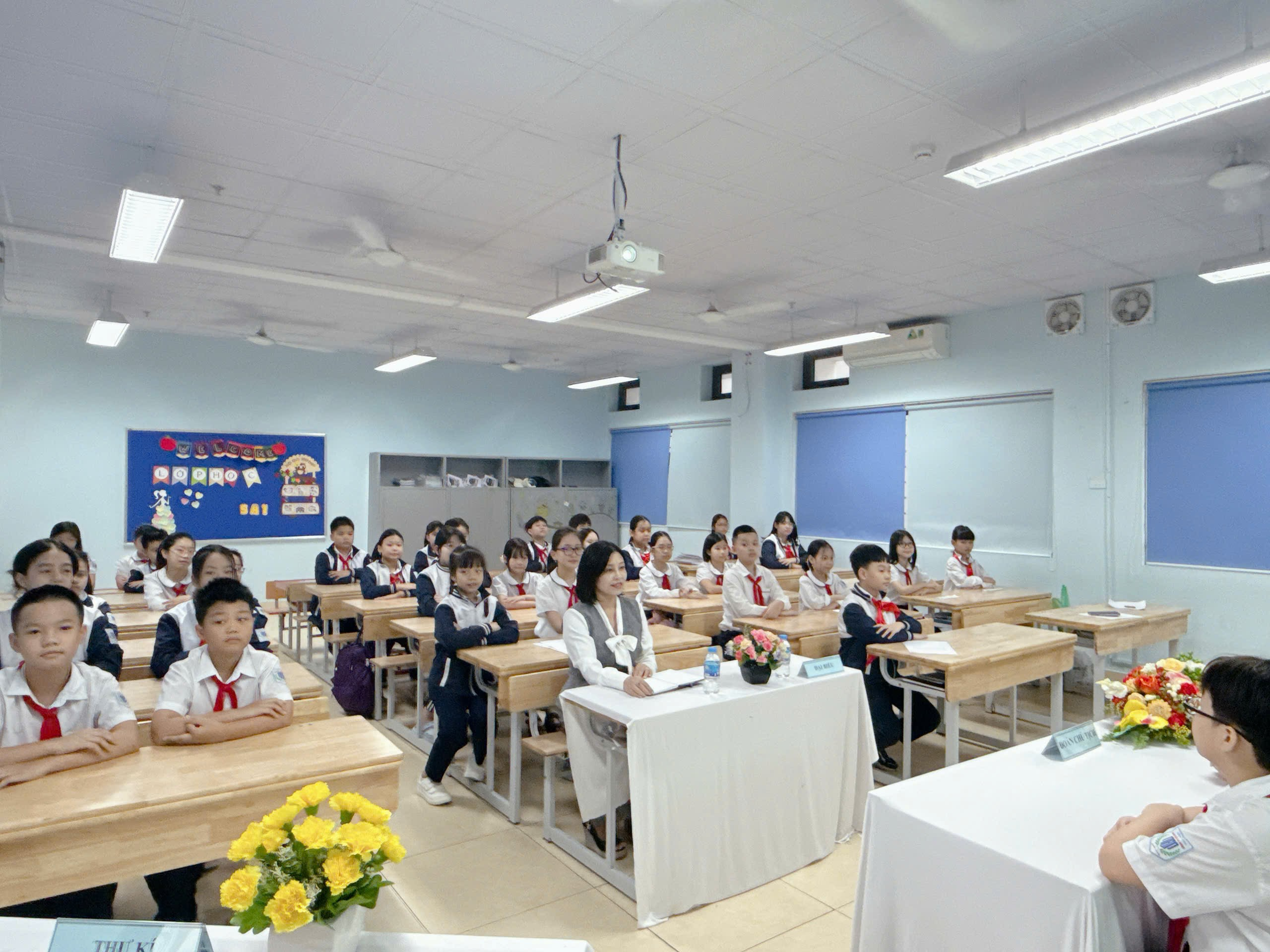 Đại hội vinh dự được đón tiếp cô Hoàng Thu Hà – Phó Hiệu trưởng nhà trường, cô Lưu Lan Hương - Tổng phụ trách Đội TNTP, cô Hoàng Vân Anh - Bí thư Chi đoàn, các thầy cô giáo đại diện cho khối 4, 5 trong nhà trường và 40 đội viên tiêu biểu đã về dự đông đủ.