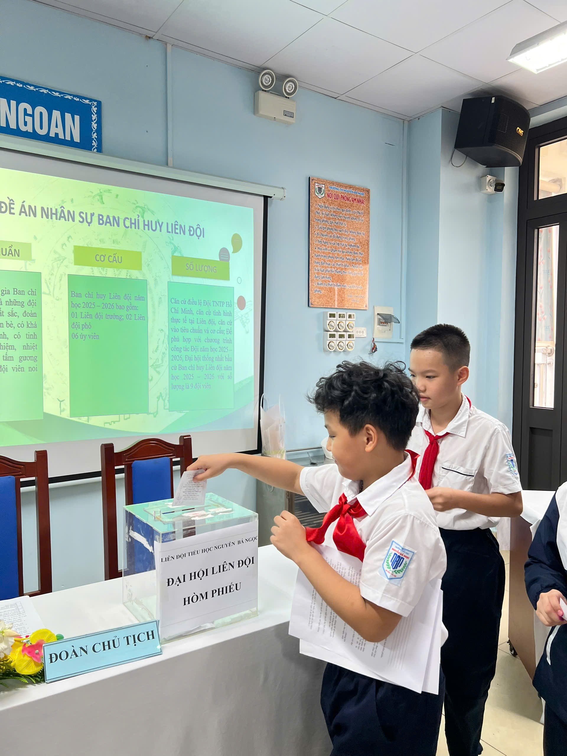 Đại hội đã bầu BCH Liên đội năm học 2025-2026 với 9 em. Các em là những đội viên tiêu biểu có phẩm chất đạo đức tốt, có năng lực hoạt động Đội và có tinh thần trách nhiệm cao trong mọi công việc và các em sẽ quyết tâm thực hiện tốt các mục tiêu trong năm học mới của Liên đội trường Tiểu học Nguyễn Bá Ngọc.