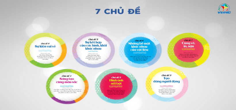 – Chủ đề 1: Sáng tạo cùng màu sắc – Chủ đề 4: Sự kiện vui vẻ