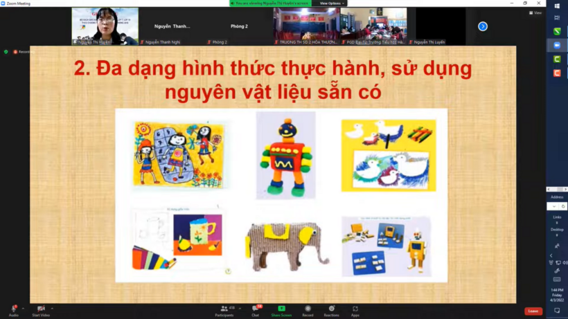 Sáng nay, 21/7/2022, giáo viên trường Tiểu học Nguyễn Bá Ngọc đã tham dự buổi tập huấn trực tuyến SGK Mĩ thuật 3 - Cánh diều (Nhà xuất bản Đại Học Sư Phạm) của ThS Nguyễn Thị Đông (Tổng chủ biên) và ThS Phạm Đình Bình (Chủ biên).