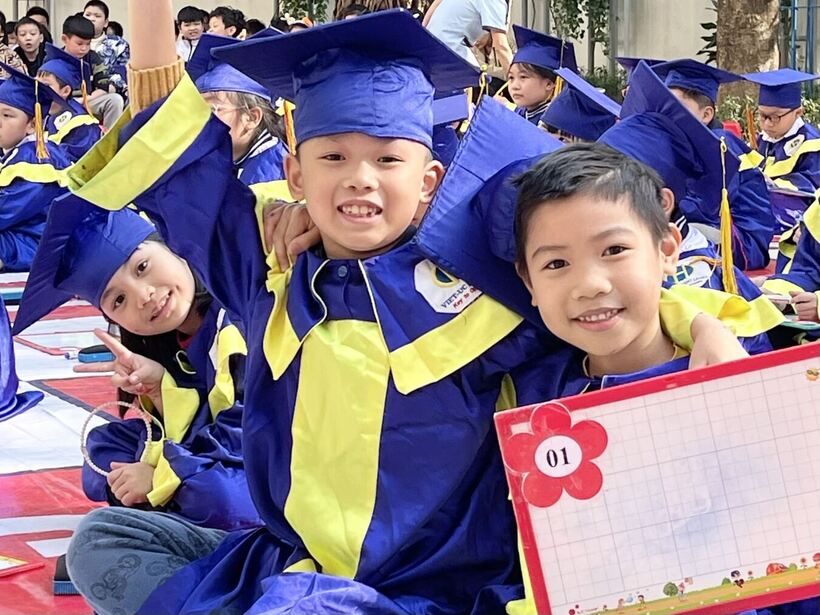 Niềm vui và sự hứng khởi thể hiện rõ trên khuôn mặt của các thí sinh tham gia thi "Rung chuông vàng 2022" của trường Tiểu học Nguyễn Bá Ngọc.