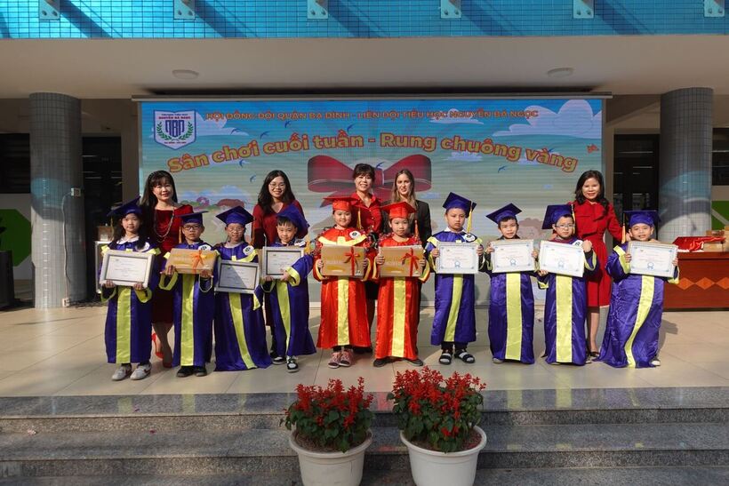 Cứ đến tháng 12 hằng năm là các học sinh trường Tiểu học Nguyễn Bá Ngọc, quận Ba Đình, thành phố Hà Nội lại háo hức chờ đón sân chơi Rung chuông vàng. Sân chơi trí tuệ mang tên Rung chuông vàng đòi hỏi các thí sinh không chỉ nắm vững kiến thức tiếng Anh đã được học trên lớp mà còn có vốn hiểu biết phong phú và đa dạng về Toán học, Văn học, Khoa học, Lịch sử bằng tiếng Anh.