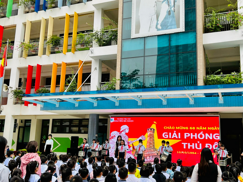 Ngày 10/10/2022, giữa những ngày thu tháng Mười lịch sử, các bạn học sinh của trường Tiểu học Nguyễn Bá Ngọc đã có cơ hội ngược dòng thời gian, hòa mình vào những năm tháng hào hùng thông qua giờ sinh hoạt đầu tuần Kỷ niệm 68 năm ngày Giải phóng Thủ đô (10/10/1954- 10/10/2022).