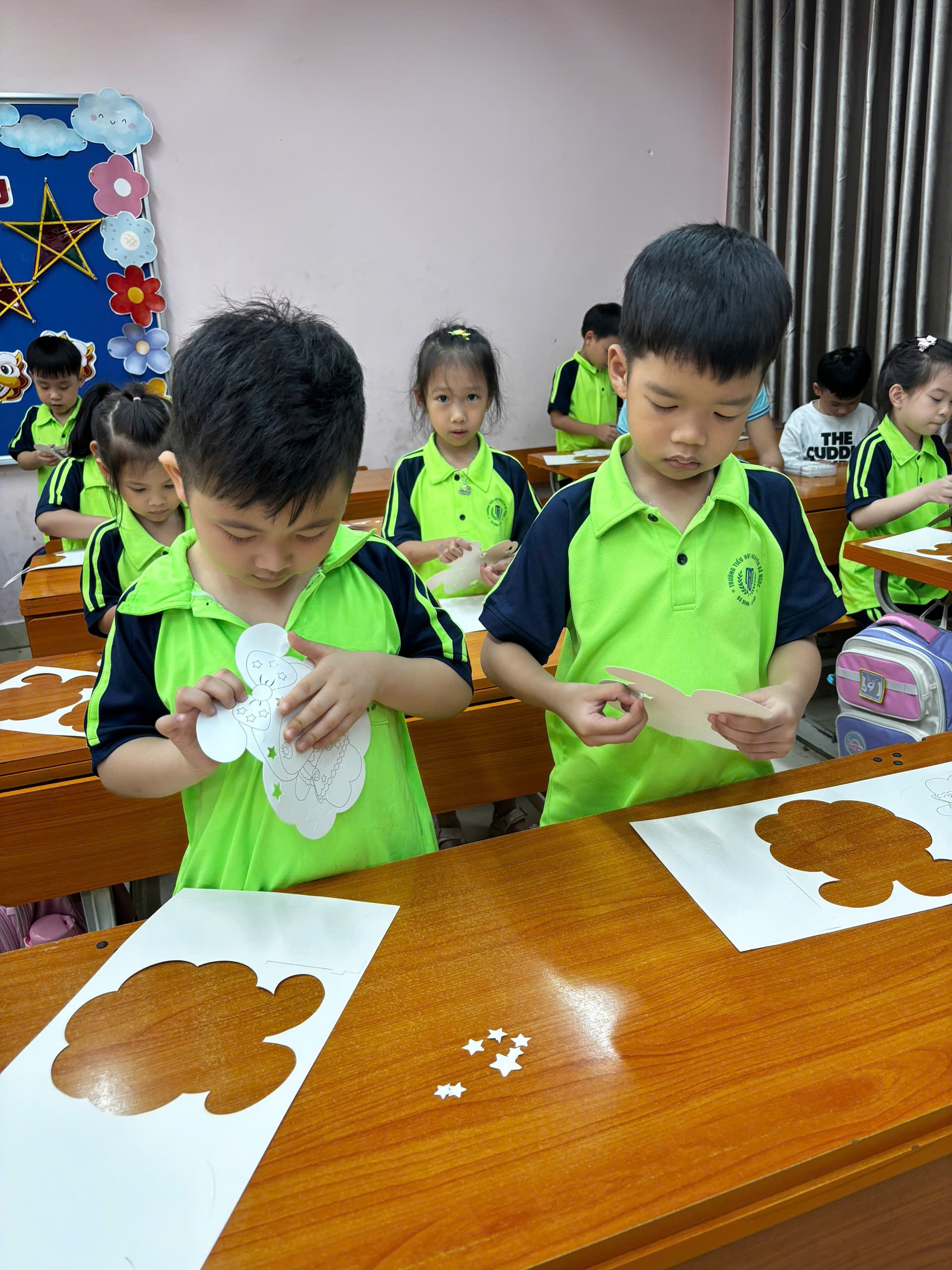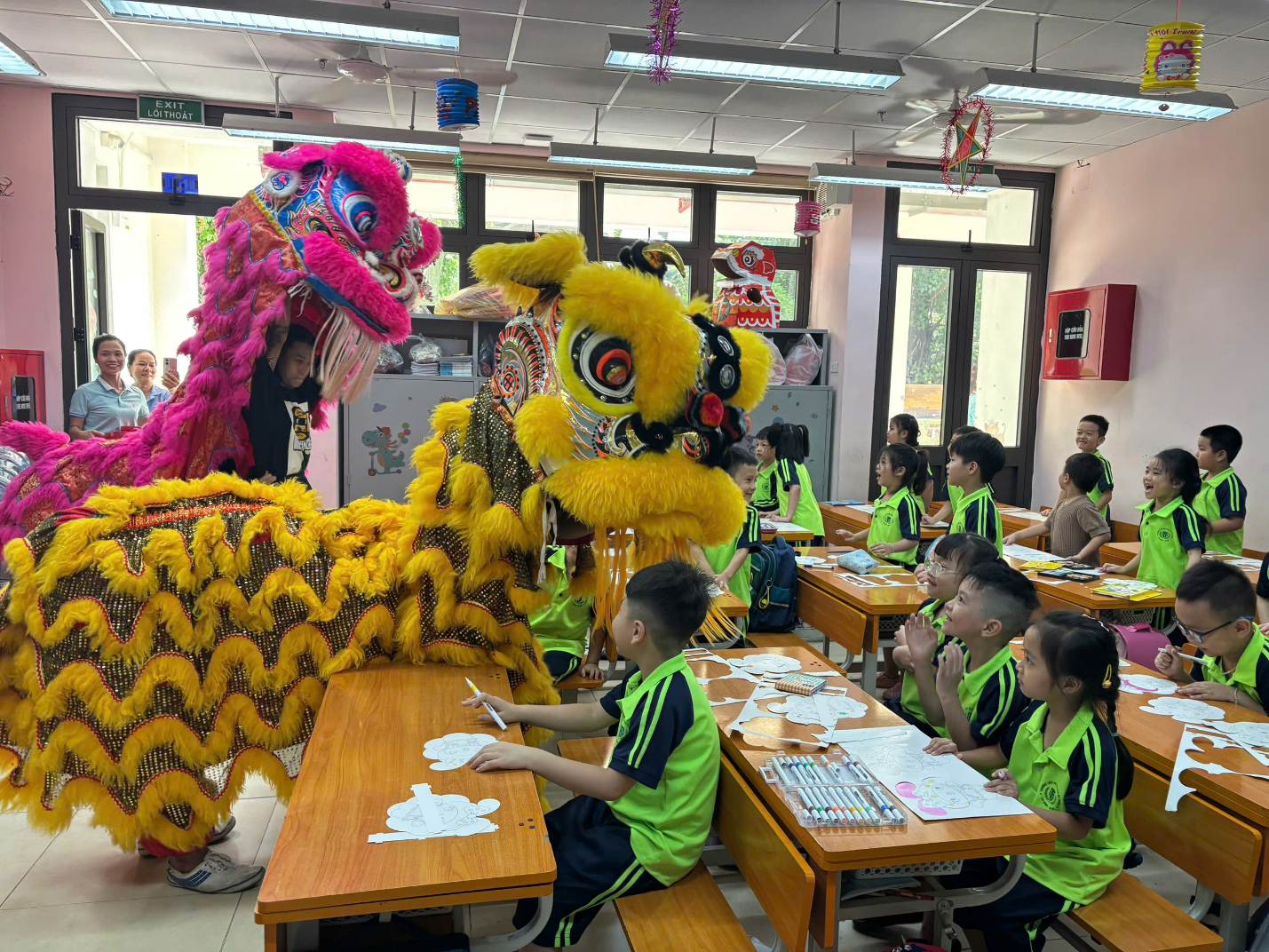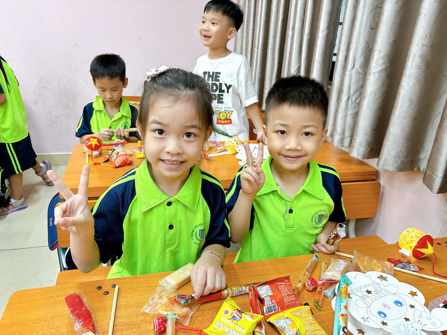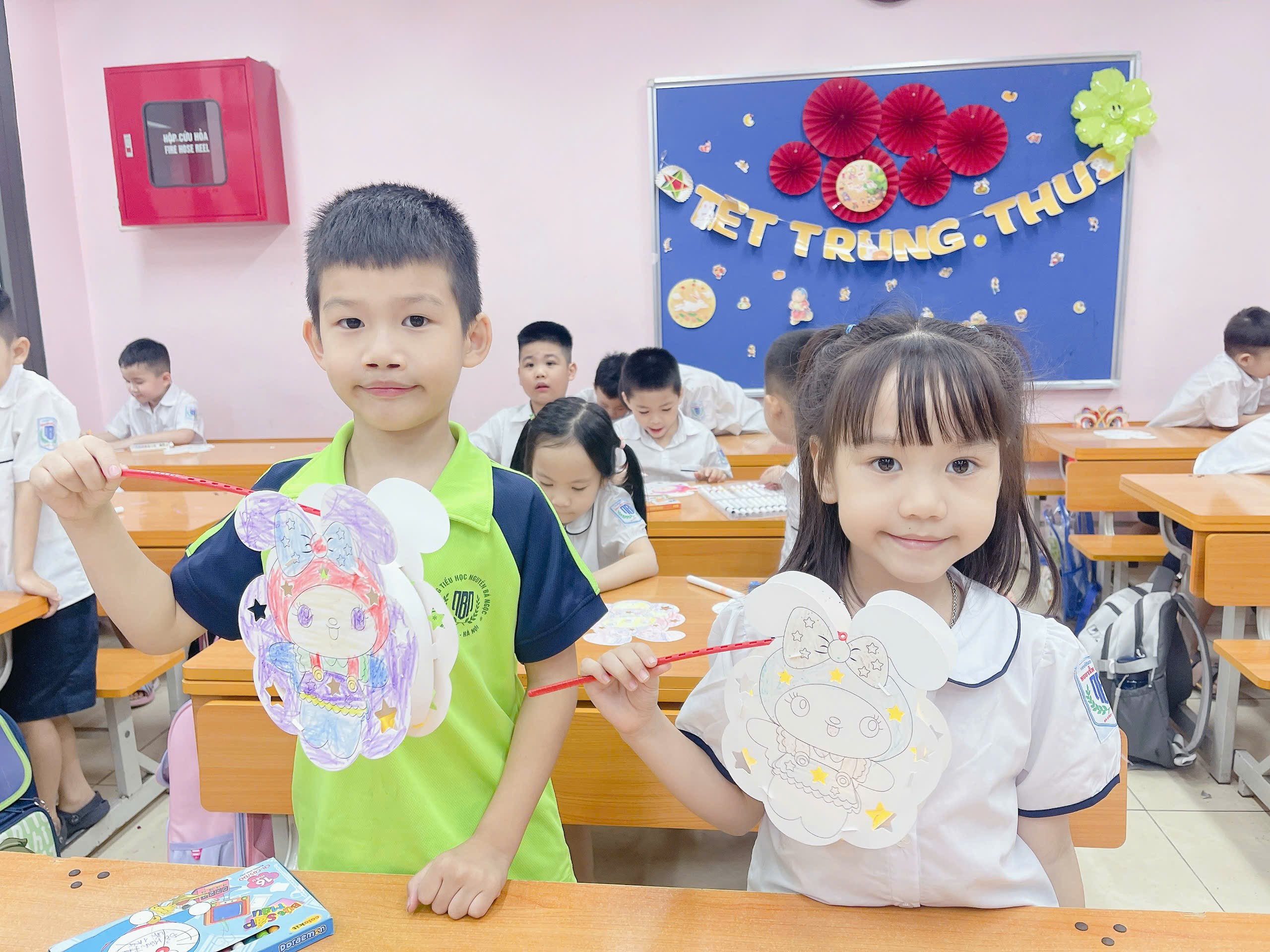 Đặc biệt, các con học sinh khối 1 được tham gia hoạt động làm đèn lồng Trung Thu dưới sự hướng dẫn tận tình của thầy cô. Những bàn tay nhỏ xinh khéo léo đã tạo nên những chiếc đèn lồng đầy sáng tạo. Mỗi sản phẩm đều chứa đựng niềm háo hức, sự khéo léo và tình yêu của các em dành cho ngày Tết cổ truyền.