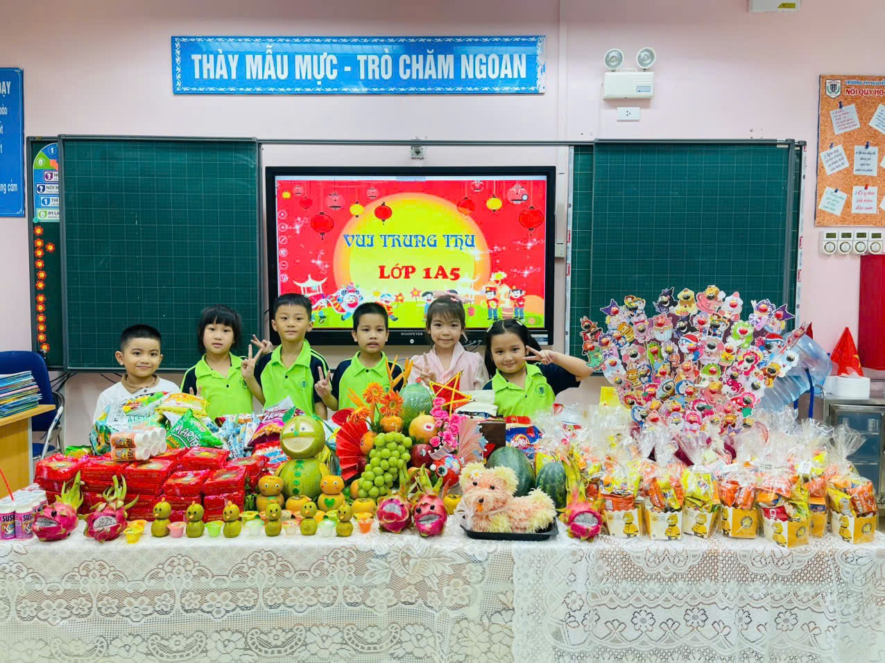 Mâm cỗ của cô giáo Thu Hà và các con học sinh lớp 1A2