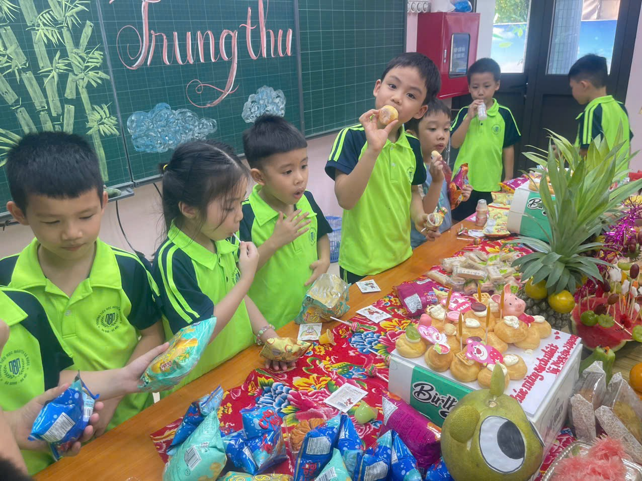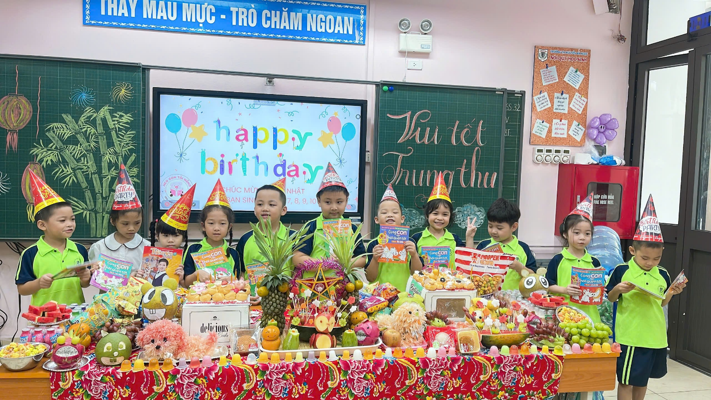 Buổi liên hoan Trung thu diễn ra trong không khí ấm áp, vui tươi cùng với mâm cỗ đầy ắp bánh kẹo. Các con cùng nhau thưởng thức, chia sẻ và cảm nhận trọn vẹn không khí đầm ấm, yêu thương của ngày Tết Thiếu nhi truyền thống.