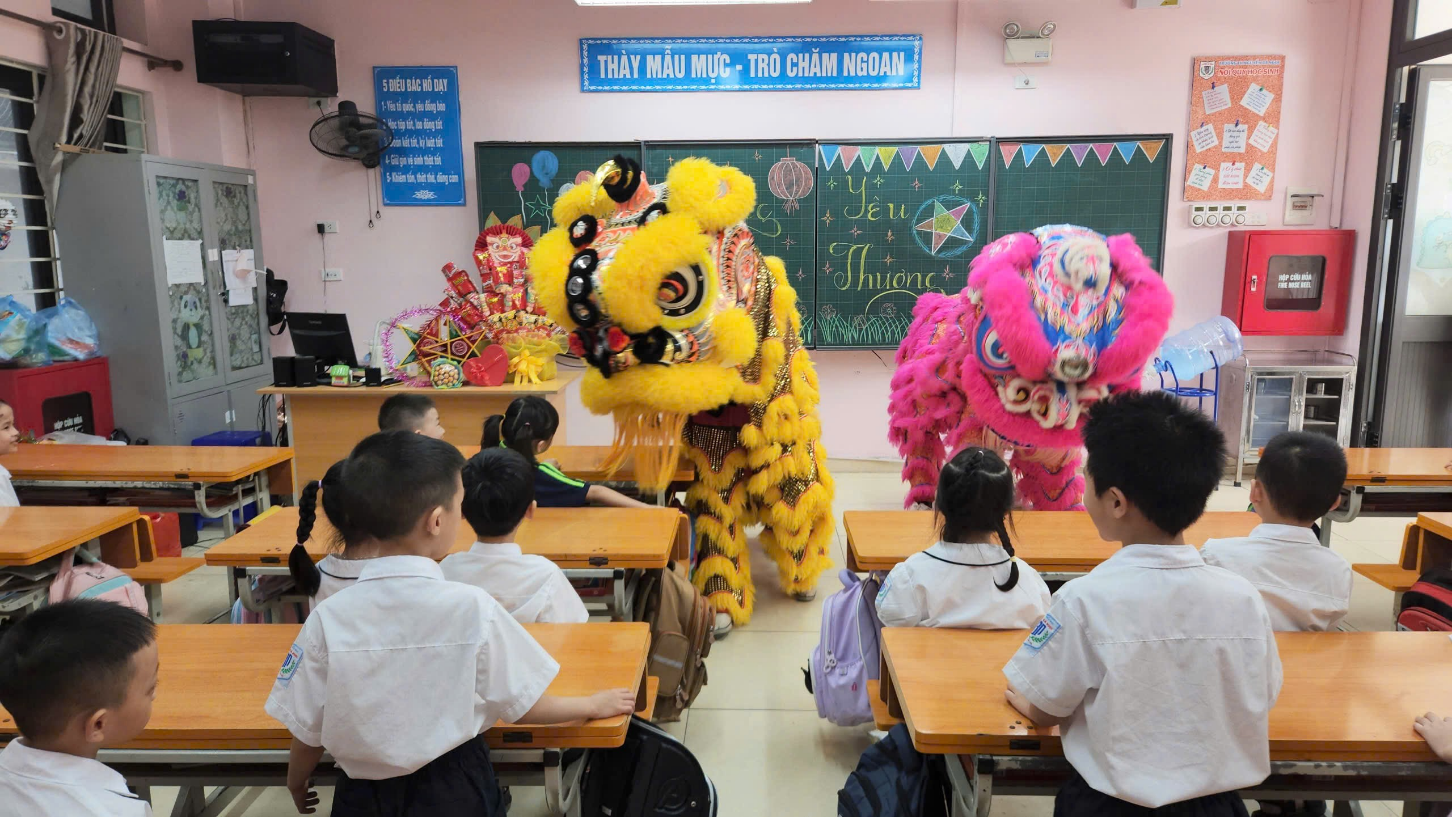 Chương trình bắt đầu bằng màn múa lân sôi động, mang đến bầu không khí tưng bừng, náo nhiệt. Tiếng trống lân vang rộn khắp sân trường, tiếng reo hò, tiếng vỗ tay giòn giã của học sinh tạo nên một khung cảnh lễ hội thật sôi nổi.