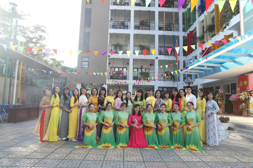 Tập thể giáo viên nhà trường chụp ảnh kỉ niệm