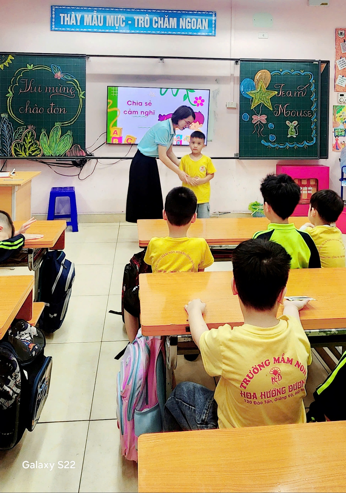Ngay từ khi đặt chân tới trường, các em học sinh mầm non đã được các thầy cô giáo và anh chị học sinh chào đón nồng nhiệt. Không gian trường học khang trang, sạch đẹp cùng sự hướng dẫn tận tình của thầy cô đã giúp các em nhanh chóng cảm thấy gần gũi, tự tin hơn khi đến thăm một môi trường mới.