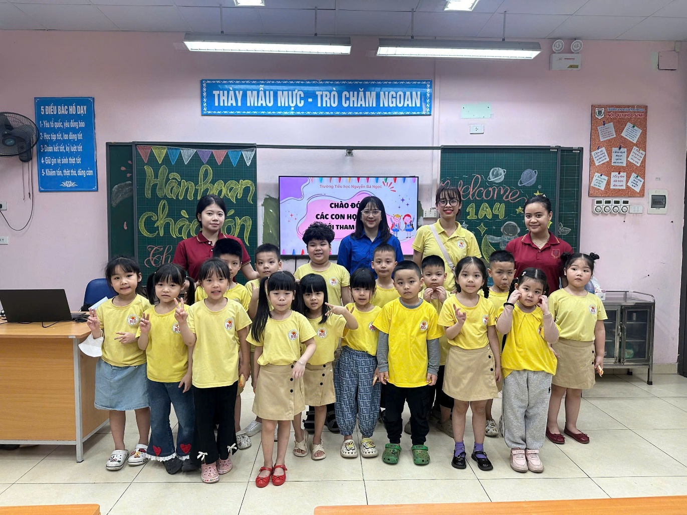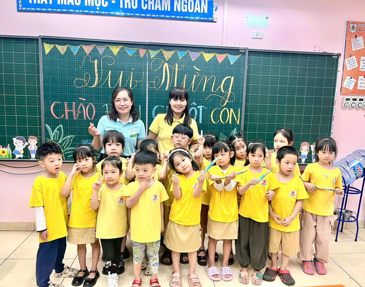 Ngay từ khi đặt chân tới trường, các em học sinh mầm non đã được các thầy cô giáo và anh chị học sinh chào đón nồng nhiệt. Không gian trường học khang trang, sạch đẹp cùng sự hướng dẫn tận tình của thầy cô đã giúp các em nhanh chóng cảm thấy gần gũi, tự tin hơn khi đến thăm một môi trường mới.