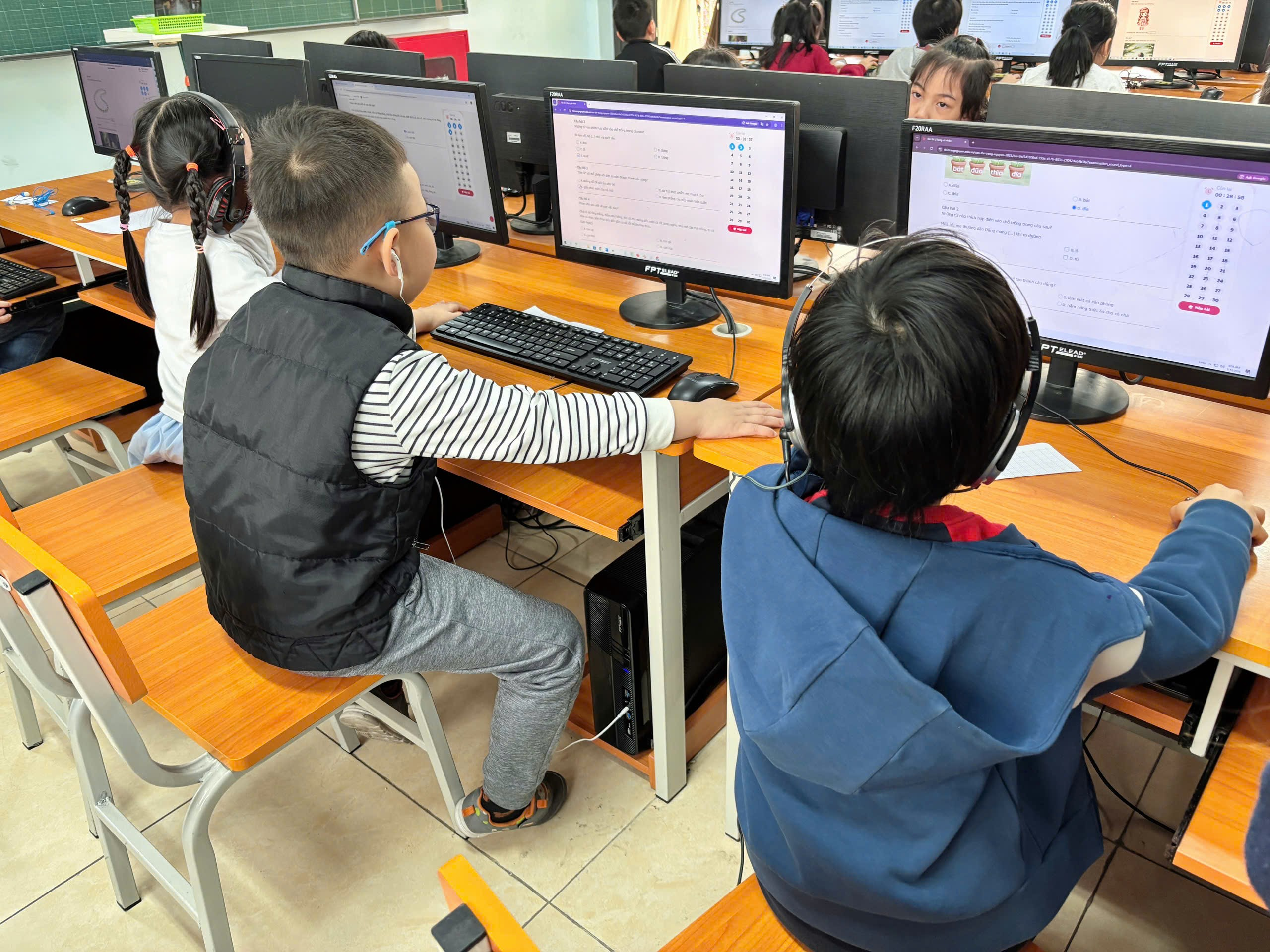 Để đảm bảo tính công bằng và đánh giá đúng năng lực, vòng thi này được tổ chức với quy định nghiêm ngặt nhưng vẫn bám sát chương trình học. Trong thời gian tối đa 30 phút, các em phải hoàn thành một bài thi duy nhất gồm 30 câu hỏi để chinh phục mức điểm tối đa là 300. Điểm thú vị thu hút các sĩ tử nhí chính là sự đa dạng của các loại hình câu hỏi tương tác như trắc nghiệm, điền từ vào ca dao tục ngữ, ghép cặp tương ứng, sắp xếp trật tự câu, kéo thả vào ô chủ đề và chọn đáp án có sẵn. Những thử thách này không chỉ đòi hỏi kiến thức vững vàng mà còn yêu cầu khả năng tư duy ngôn ngữ linh hoạt và kỹ năng sử dụng công nghệ thành thạo.