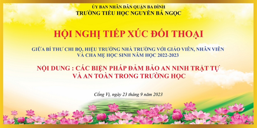Cuối buổi đối thoại, nhà giáo Phạm Thị Thiên Nga - Hiệu trưởng nhà trường mong muốn sẽ tiếp tục xây dựng trường tiểu học Nguyễn Bá Ngọc luôn là trường học thân thiện, đảm bảo tốt về an ninh, an toàn và nói không với bạo lực học đường. Cùng với sự đồng hành từ phía phụ huynh học sinh, chính quyền địa phương, mong rằng các con học sinh sẽ thực sự có “Mỗi ngày đến trường là một ngày vui.”