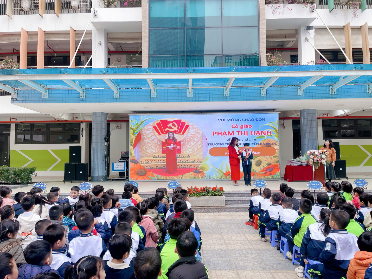 Sáng ngày 29/12/2015, trong buổi sinh hoạt dưới cờ đầu tuần, tập thể cán bộ, giáo viên và học sinh trường Tiểu học Nguyễn Bá Ngọc đã vui mừng chào đón cô Phạm Thị Hạnh về nhận nhiệm vụ Phó Hiệu trưởng nhà trường.