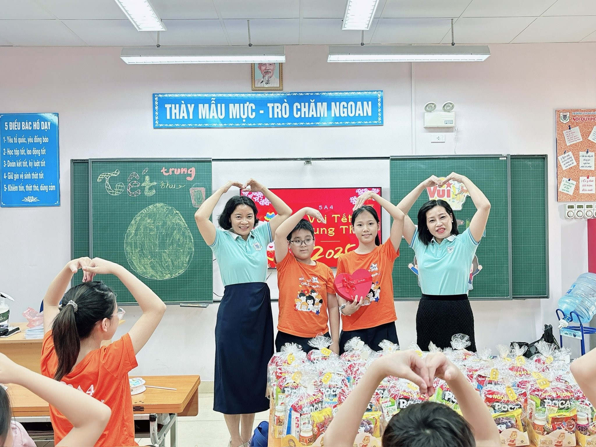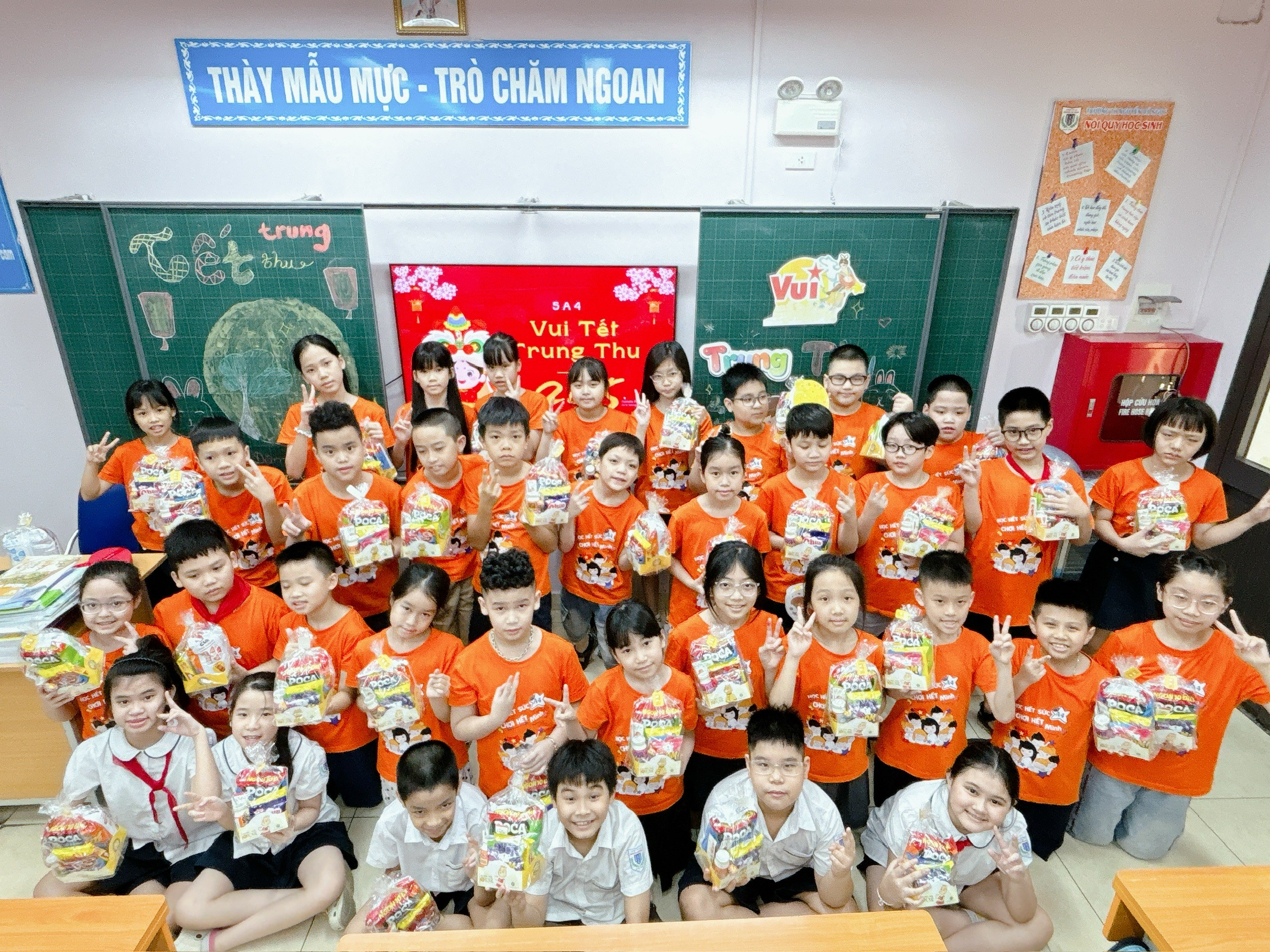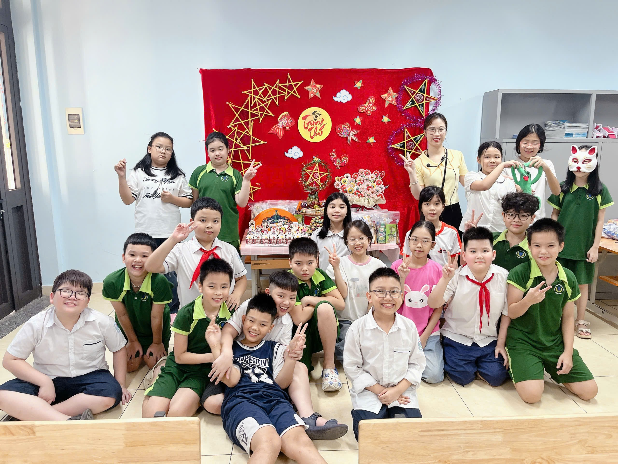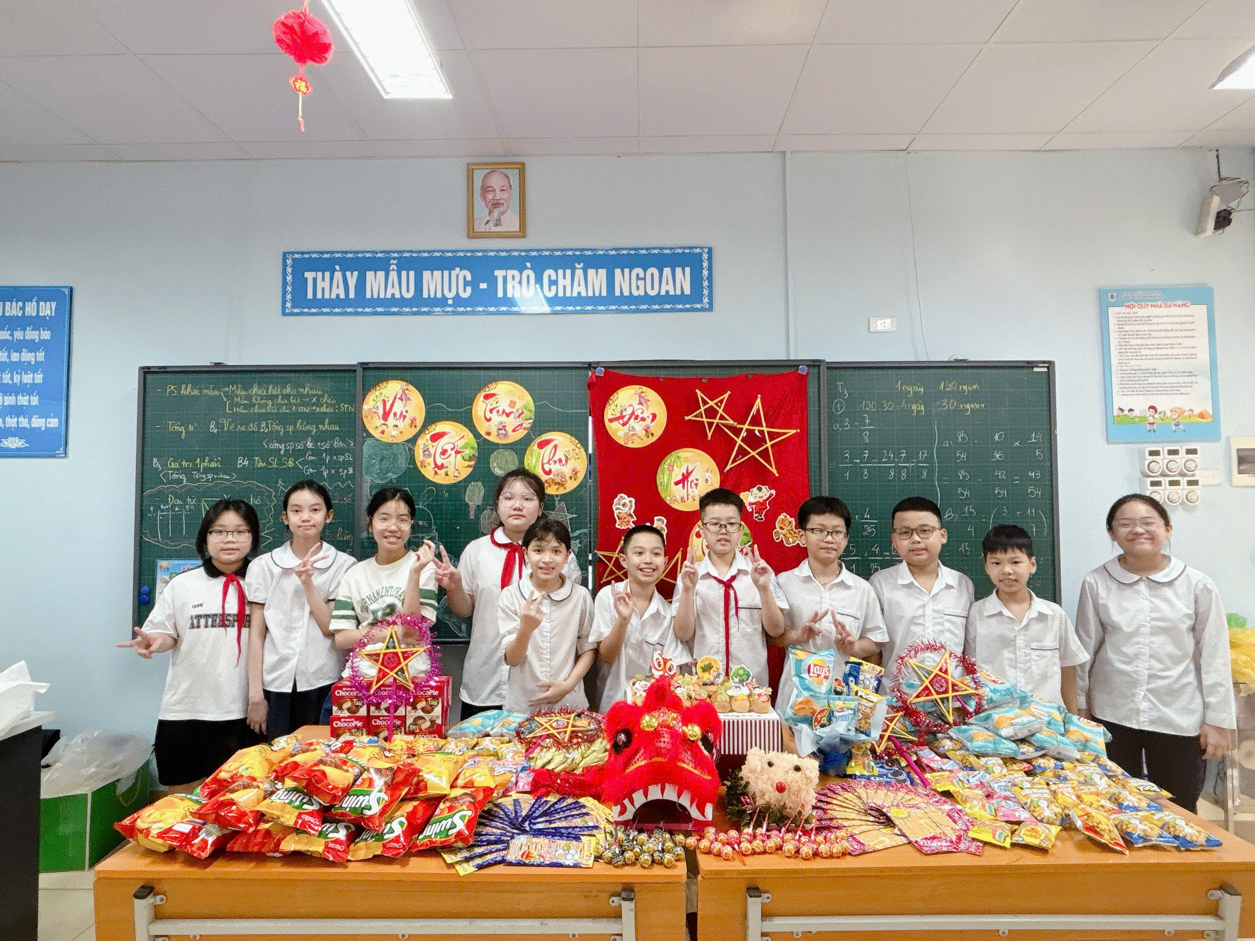 Các bạn cùng nhau phá cỗ, chia bánh và kể cho nhau nghe về ý nghĩa của Tết Trung thu – Tết của tình thân, đoàn viên và sẻ chia. Dù thời tiết không thuận lợi, các bạn học sinh khối 5 vẫn giữ được tinh thần vui tươi và biết cách thích ứng. Việc tổ chức Trung thu trong lớp học không chỉ giúp các em hiểu giá trị của sự đoàn kết, mà còn rèn kỹ năng tổ chức, tinh thần trách nhiệm và lòng yêu thương.