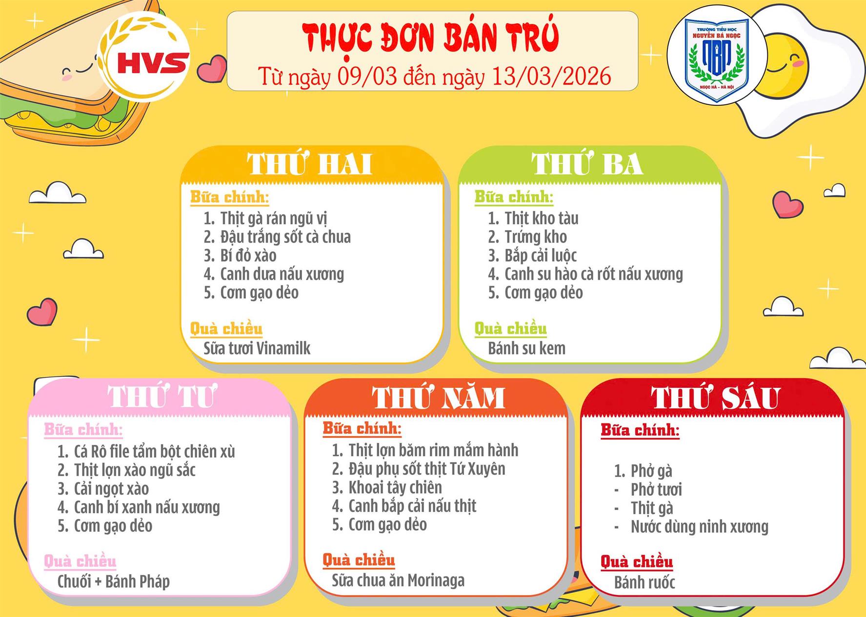 Thực đơn bán trú Tuần 26