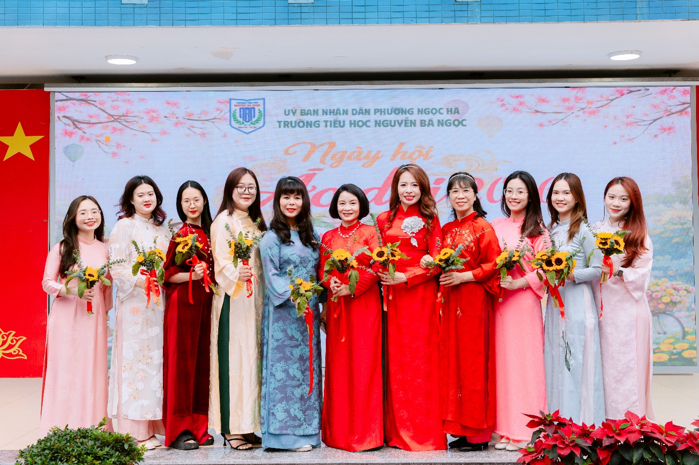 Tập thể cán bộ, giáo viên trường Tiểu học Nguyễn Bá Ngọc duyên dáng trong tà áo dài truyền thống