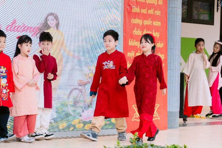 Điểm nhấn của chương trình là phần trình diễn áo dài của các “người mẫu nhí” đến từ các lớp. Trong những bộ áo dài rực rỡ sắc màu, các em học sinh tự tin sải bước trên sân trường với phong thái hồn nhiên, đáng yêu. Những bước đi nhỏ xinh nhưng đầy tự tin của các em đã mang đến bầu không khí vui tươi, sinh động và nhận được sự cổ vũ nhiệt tình từ thầy cô và các bạn học sinh.
