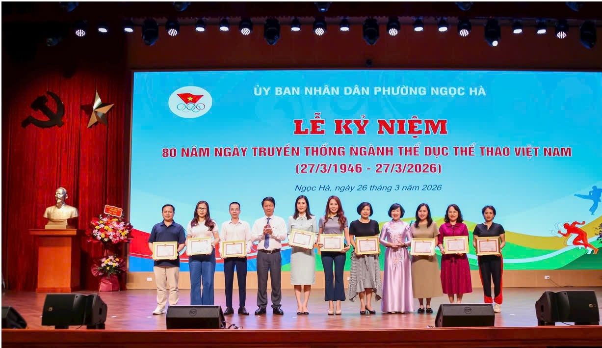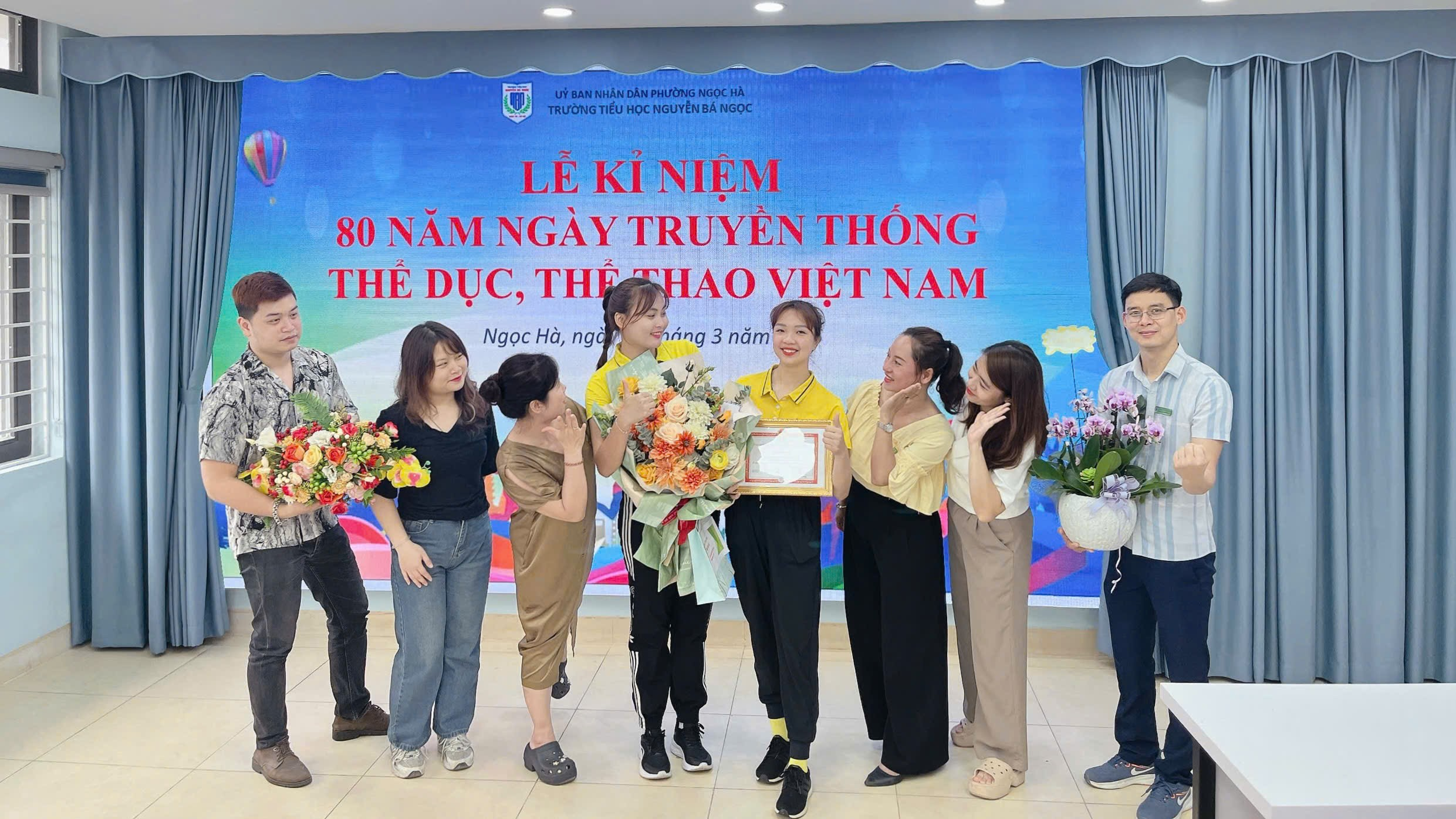 Cùng ngày, trường Tiểu học Nguyễn Bá Ngọc xin gửi lời chúc mừng tới các đơn vị, ban, ngành Thể thao và đặc biệt là trung tâm Văn hóa – Thông tin và Thể thao phường Ngọc Hà nhân dịp 80 năm thành lập, luôn là điểm sáng lan tỏa giá trị văn hóa, nâng cao đời sống tinh thần và khơi dậy niềm tự hào, gắn kết cộng đồng ngày càng bền vững, người bạn đồng hành với các trường trên địa bàn trong mọi hoạt động phong trào của ngành.