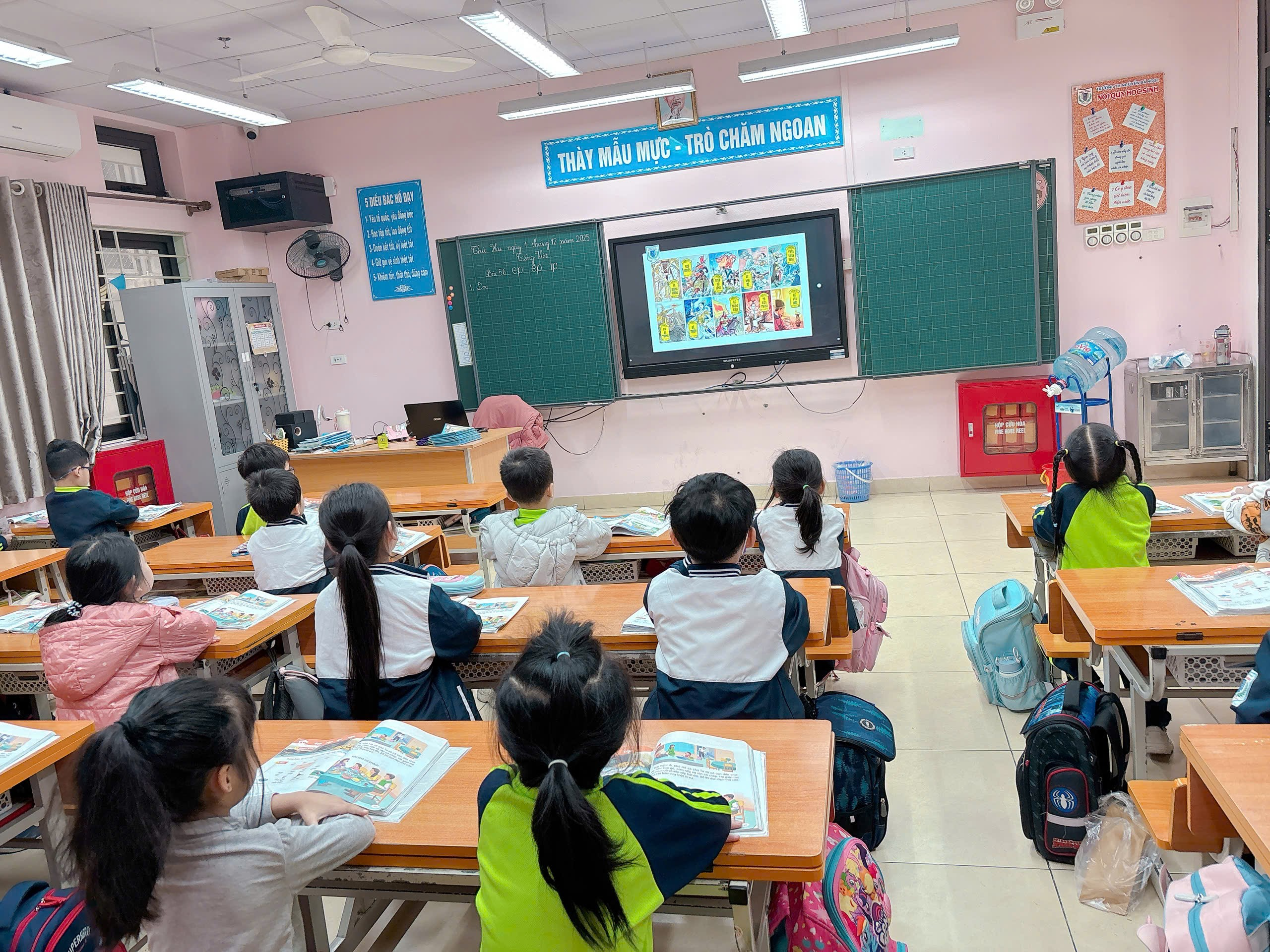 Tại buổi sinh hoạt, cô thư viện đã giới thiệu đến toàn thể học sinh bộ sách “Tranh truyện Lịch sử Việt Nam” của Nhà xuất bản Kim Đồng. Bộ sách được trình bày dưới dạng tranh truyện sinh động, nội dung ngắn gọn, dễ hiểu, phù hợp với lứa tuổi tiểu học. Các câu chuyện tái hiện nhiều nhân vật lịch sử tiêu biểu của Việt Nam như: