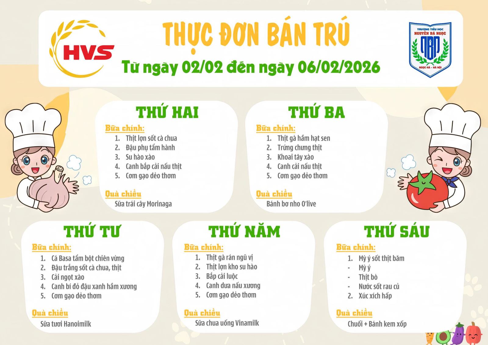 Thực đơn bán trú Tuần 17