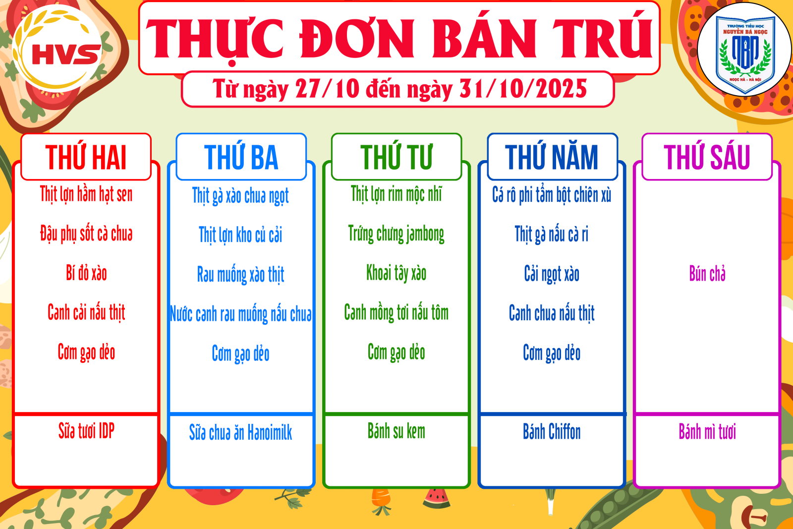 Thực đơn bán trú Tuần 10