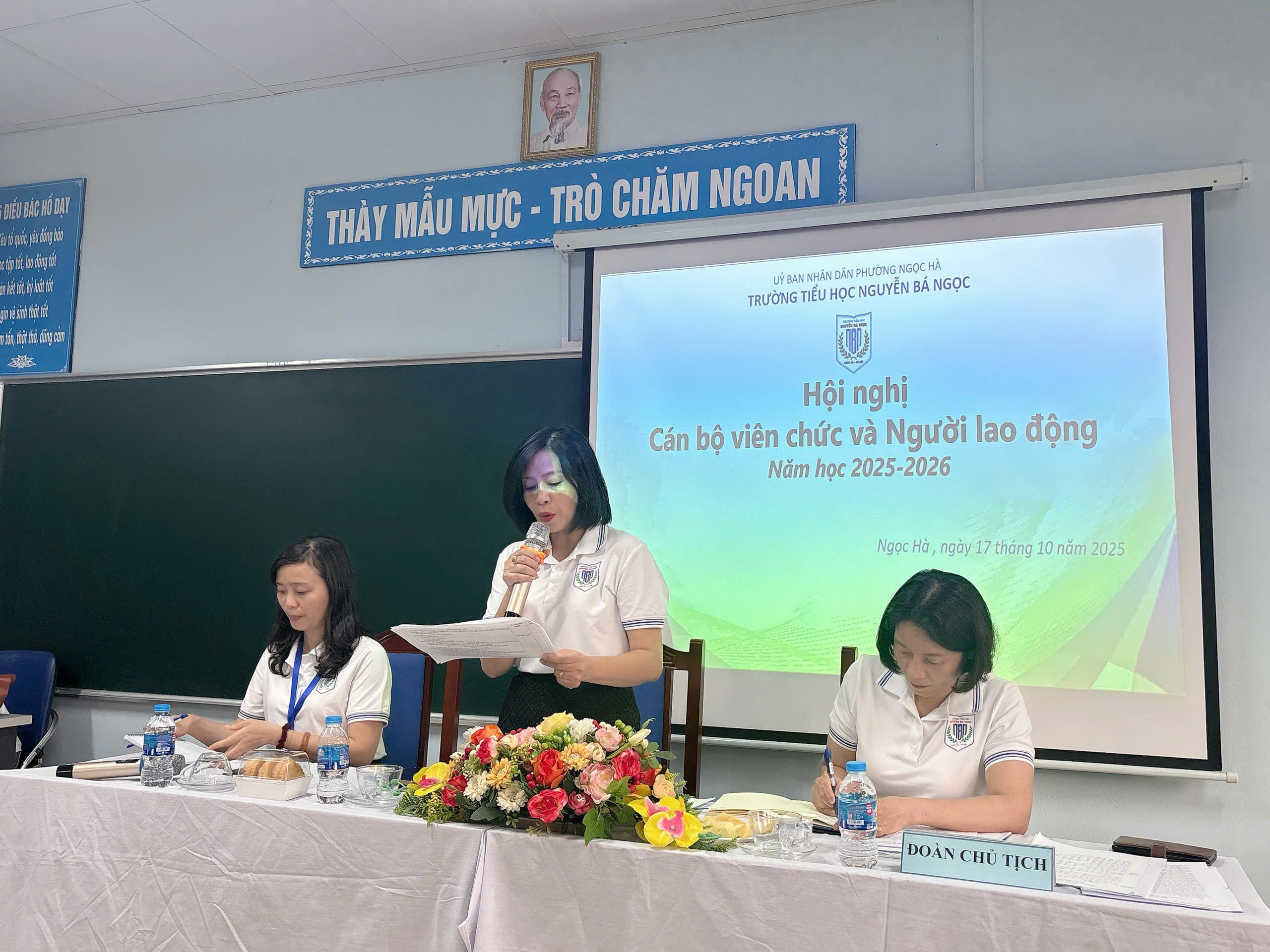 Tin tưởng rằng, với sự đoàn kết, tâm huyết và tinh thần trách nhiệm, tập thể trường Tiểu học Nguyễn Bá Ngọc sẽ tiếp tục gặt hái nhiều thành công, hoàn thành xuất sắc nhiệm vụ năm học 2025–2026, góp phần xây dựng ngôi trường ngày càng phát triển vững mạnh.