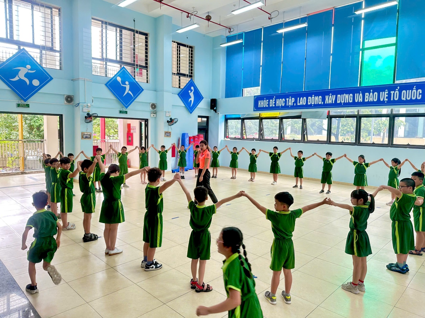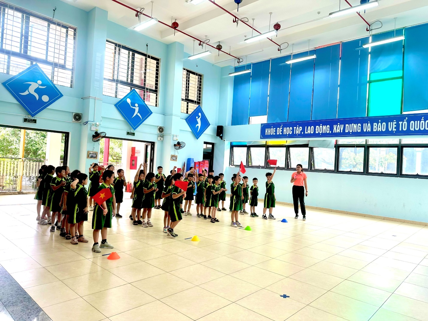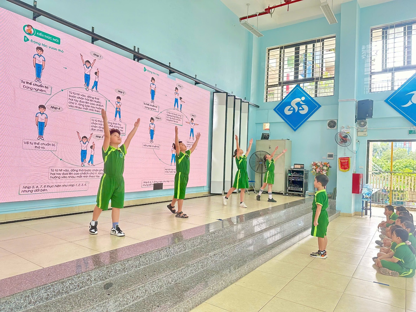 Với mục tiêu lấy người học làm trung tâm, tiết dạy môn Giáo dục thể chất tại lớp 3A2 Chủ đề 2: Bài thể dục “Động tác vươn thở, Động tác tay” đã diễn ra rất sôi nổi giữa cô và trò. Bằng việc khai thác bài học qua những bức tranh mẫu sinh động và rõ ràng, cô giáo Chu Kim Hiên đã giúp cho học sinh thực hiện được đúng kỹ thuật động tác.