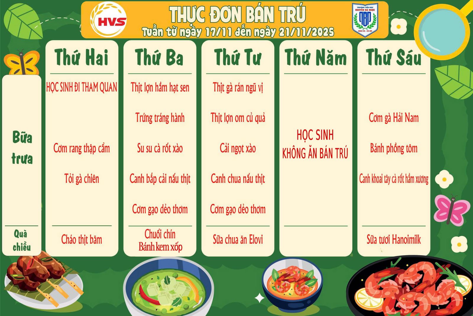 Thực đơn bán trú Tuần 11