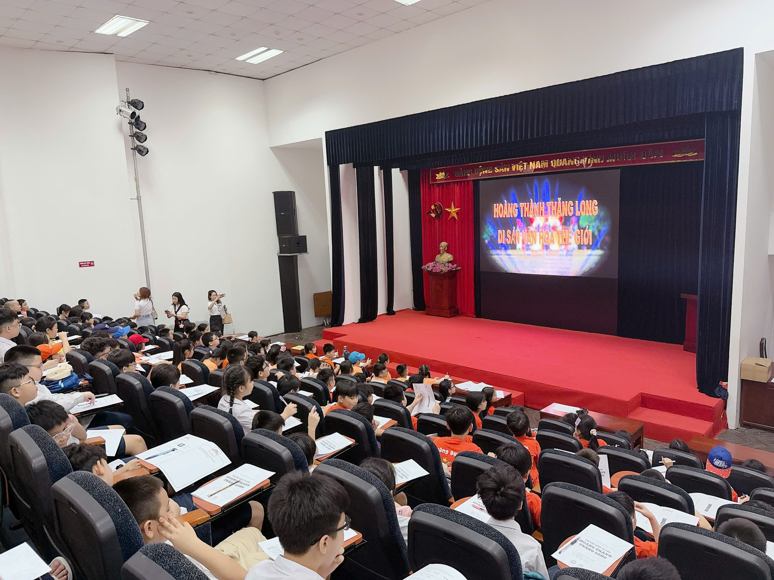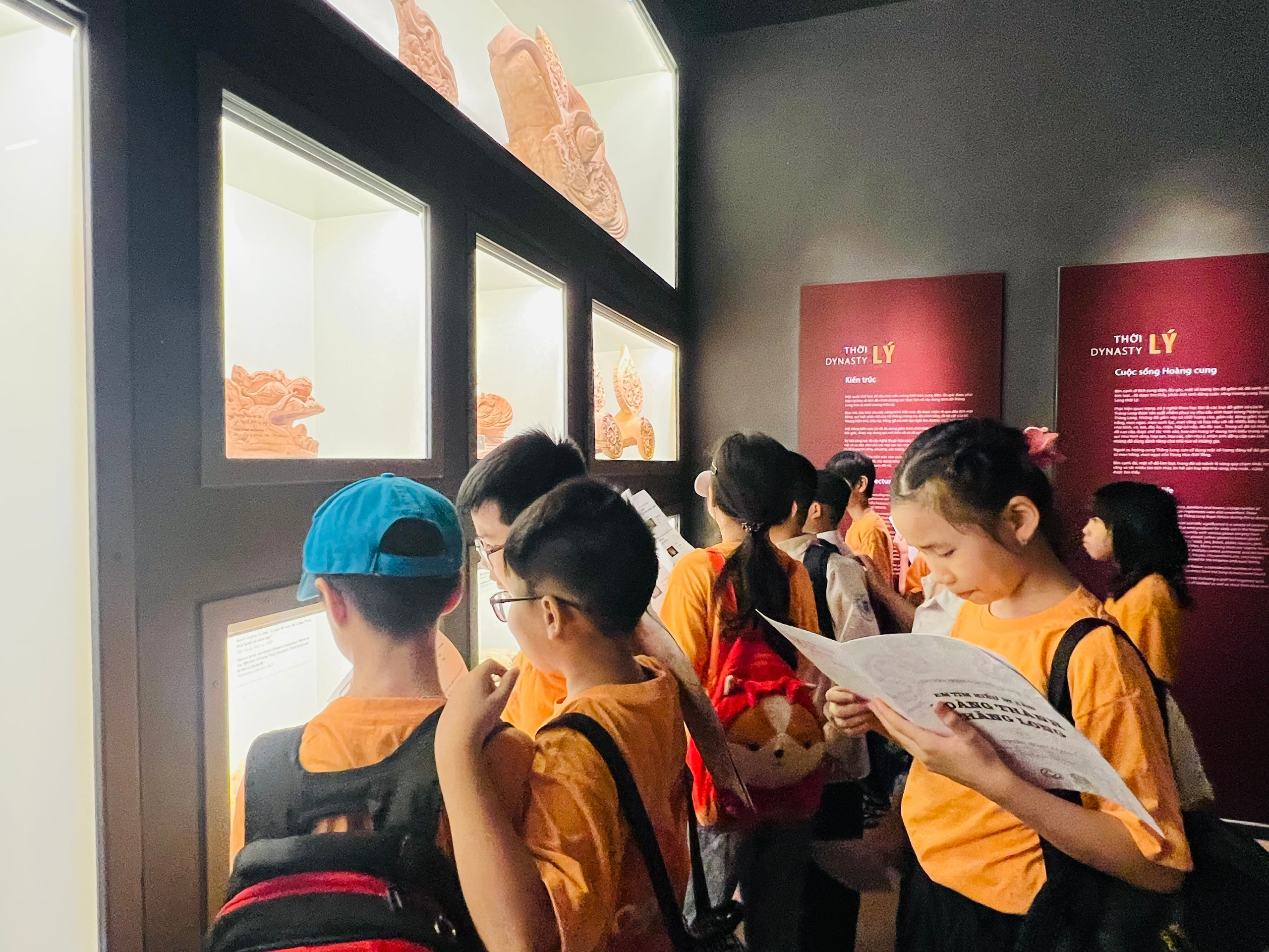 Các em học sinh háo hức khám phá và tham gia các hoạt động tại Hoàng Thành Thăng Long.