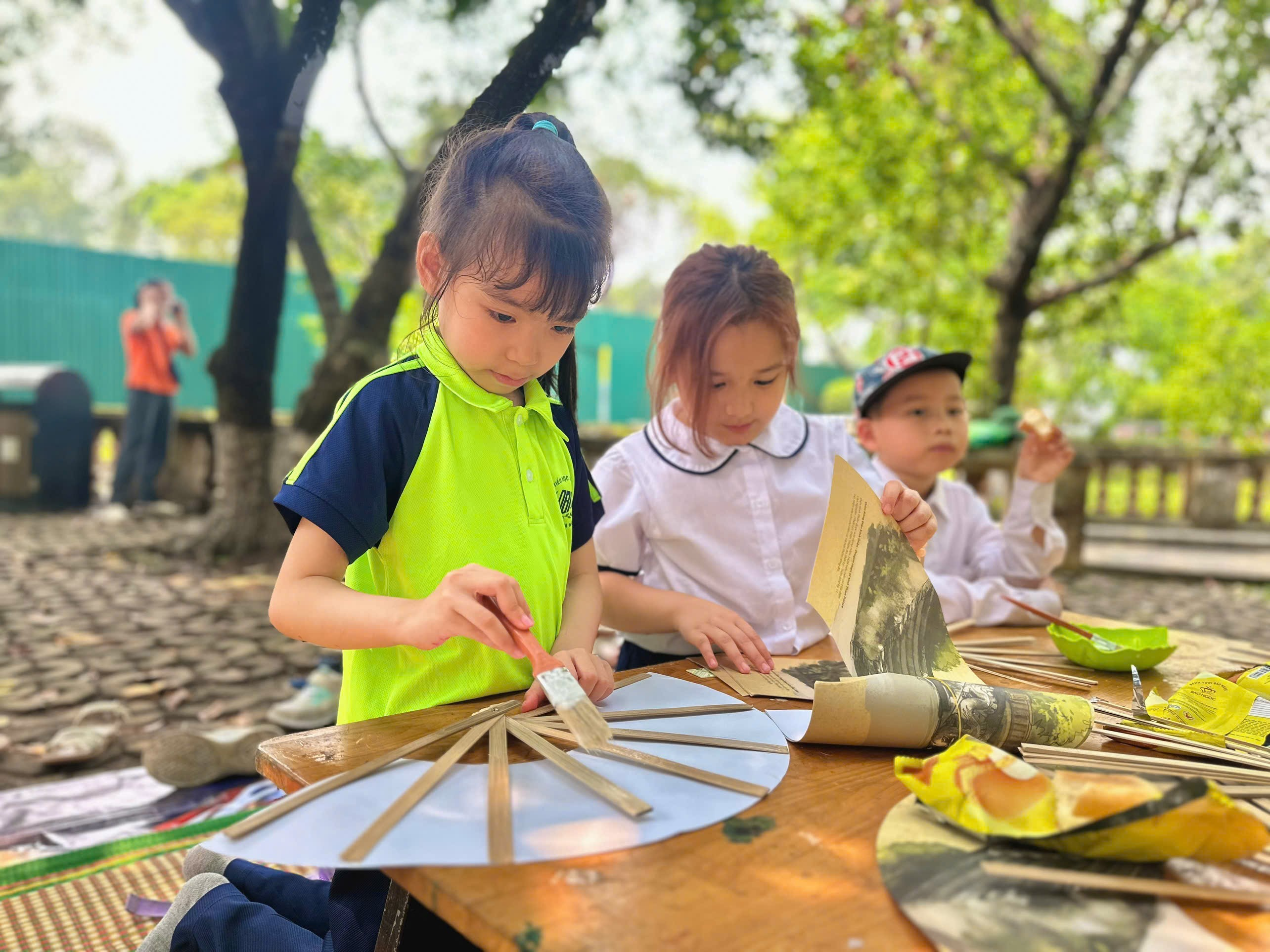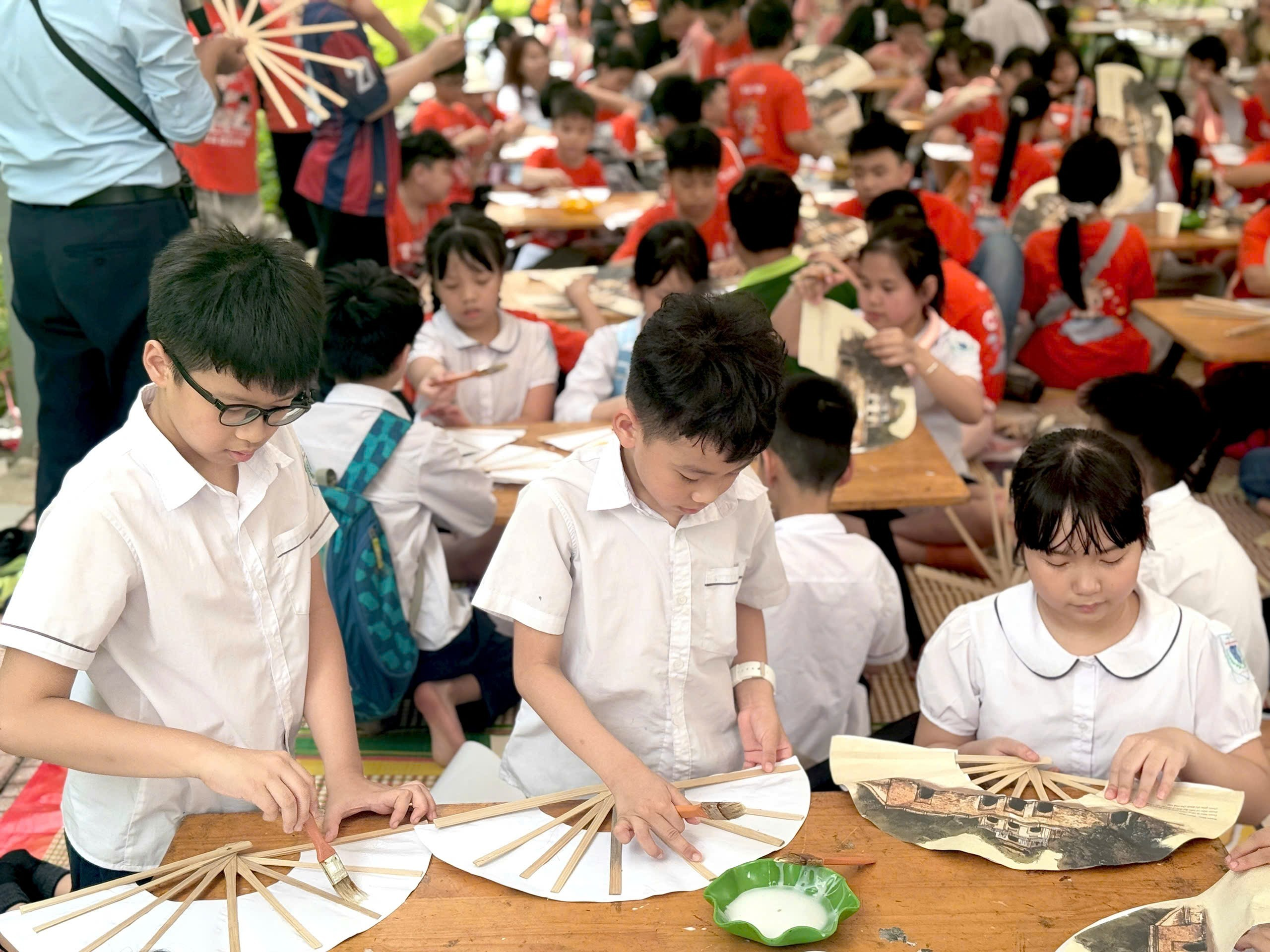 Điểm nhấn của chương trình còn là các hoạt động trải nghiệm sáng tạo như làm quạt giấy mang hình ảnh Hoàng thành Thăng Long. Qua đó, các em không chỉ được vui chơi mà còn phát huy khả năng sáng tạo, gắn kết kiến thức với thực tiễn.