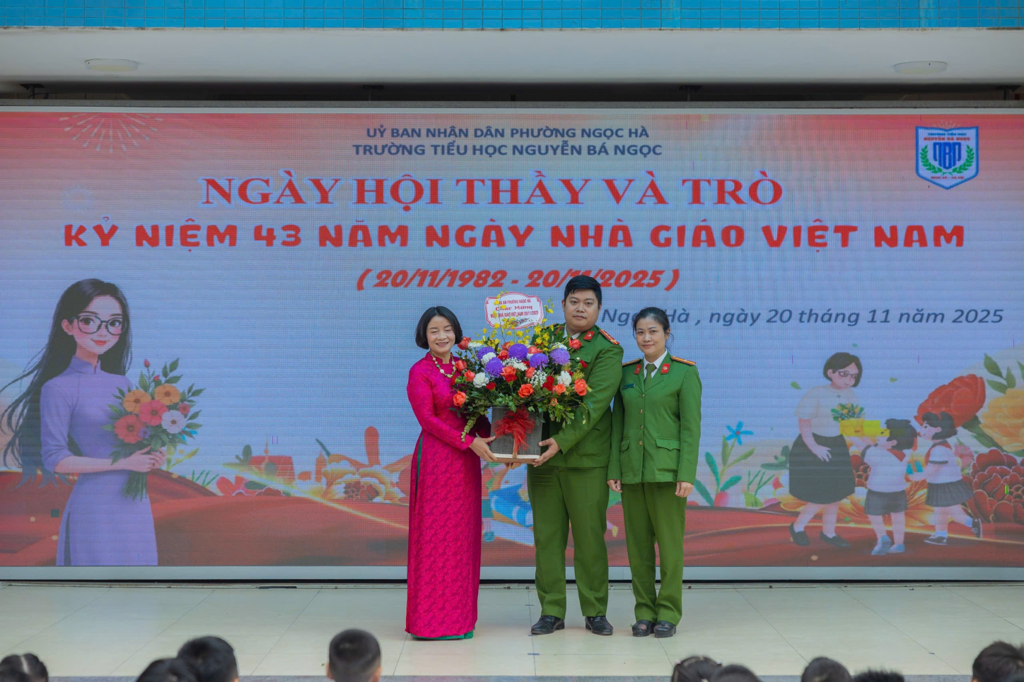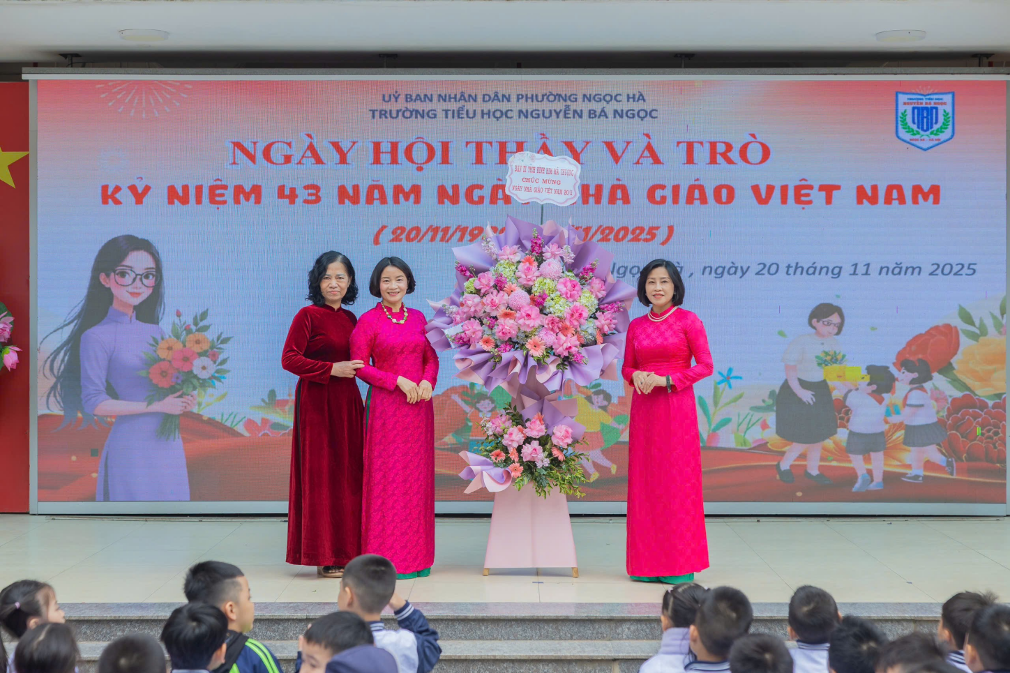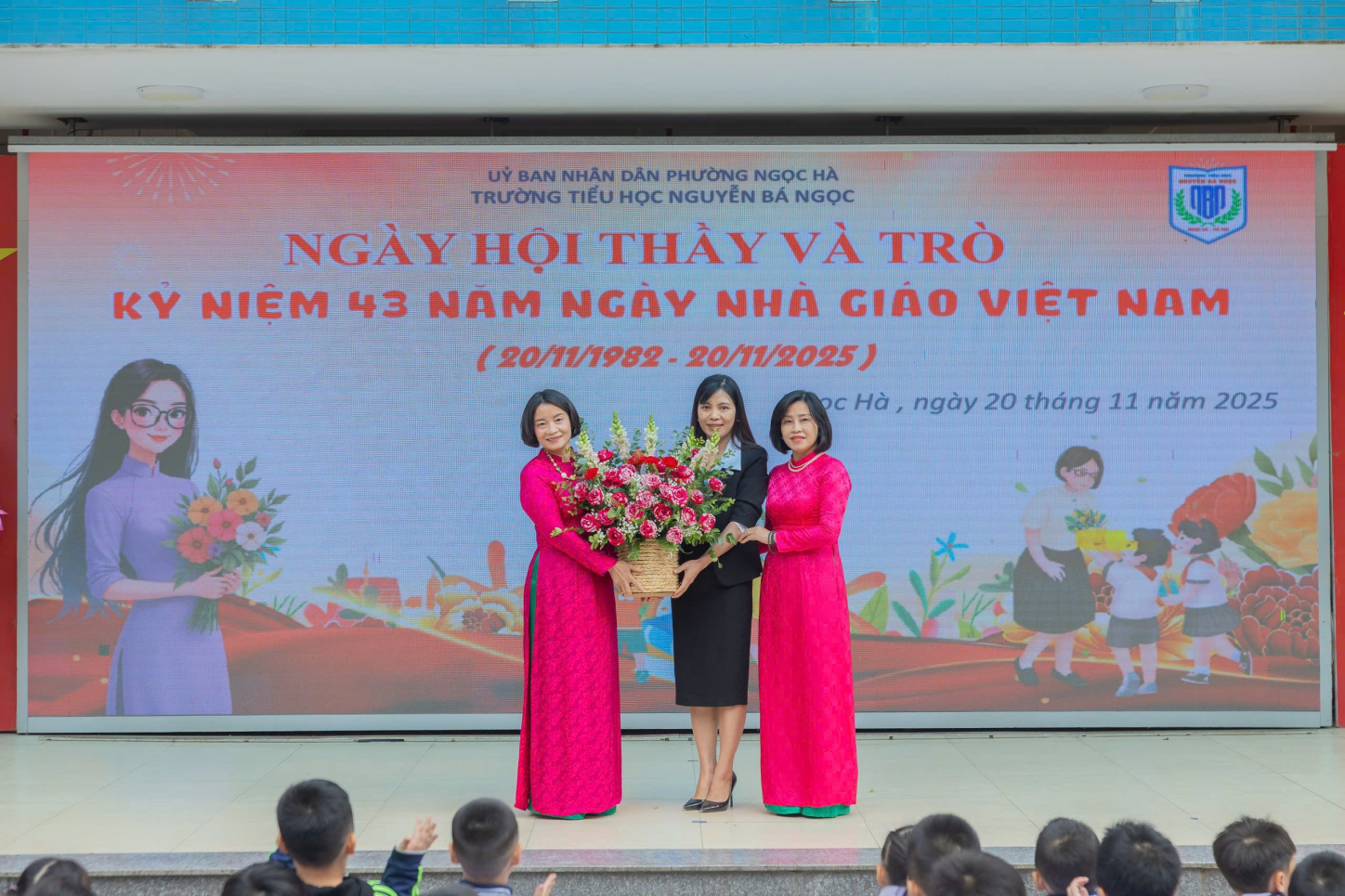 Buổi lễ tri ân 20/11 năm nay càng trở nên ý nghĩa hơn khi nhà trường vinh dự đón nhận sự quan tâm và hiện diện của đại diện nhiều cơ quan, ban ngành trên địa bàn phường Ngọc Hà. Sự có mặt của các cơ quan, ban ngành không chỉ thể hiện mối quan hệ gắn bó lâu dài mà còn là tình cảm yêu mến, sự tin tưởng dành cho trường Tiểu học Nguyễn Bá Ngọc. Các đại biểu và khách mời đã gửi lời tri ân cùng những bó hoa tươi thắm đến nhà trường, ghi nhận những thành tích nổi bật của tập thể giáo viên và học sinh trong thời gian qua.