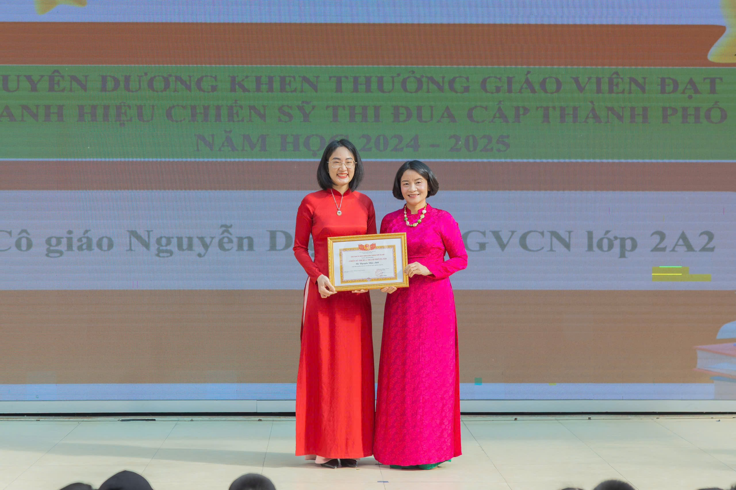 Cô giáo Nguyễn Diệu Anh GVCN lớp 2A2 nhận bằng khen Chiến sỹ thi đua cấp thành phố năm học 2024 – 2025