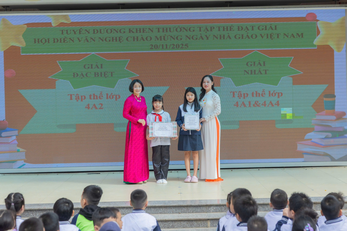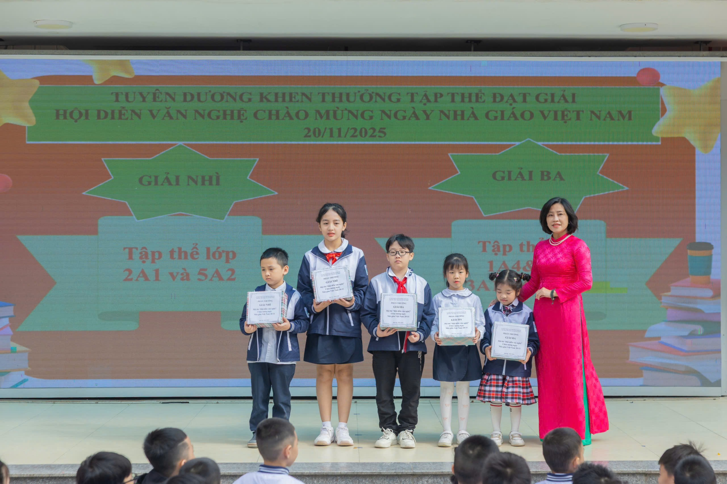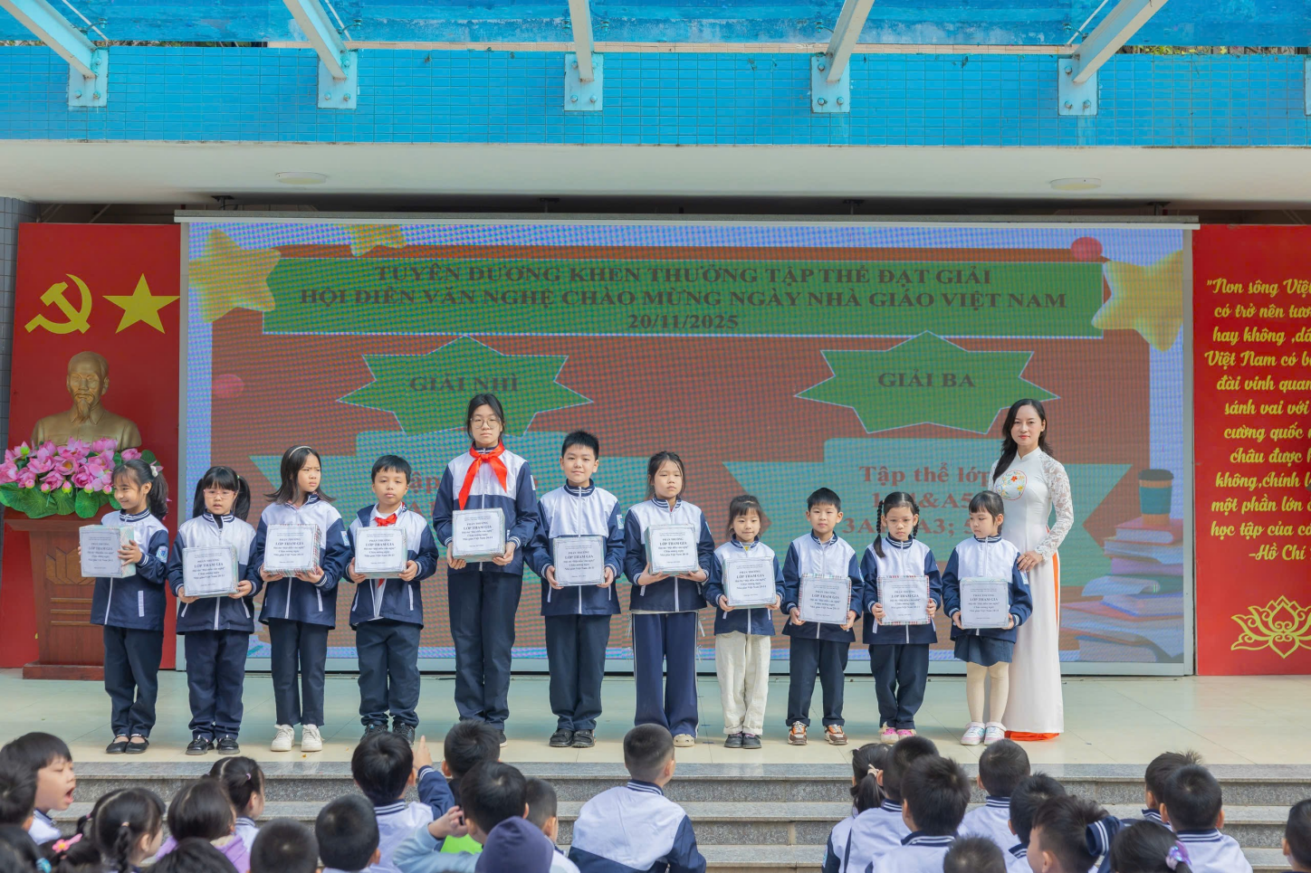 Hưởng ứng không khí vui tươi của ngày 20/11, các lớp trong toàn trường đã tích cực tham gia Hội thi Văn nghệ chào mừng ngày Nhà giáo Việt Nam với tinh thần nhiệt huyết và sáng tạo. Những tiết mục múa, hát, nhảy hiện đại, hoạt cảnh,… được các em chuẩn bị công phu đã mang đến bầu không khí sôi động, rực rỡ sắc màu, thể hiện tình cảm kính trọng, biết ơn đối với thầy cô giáo.