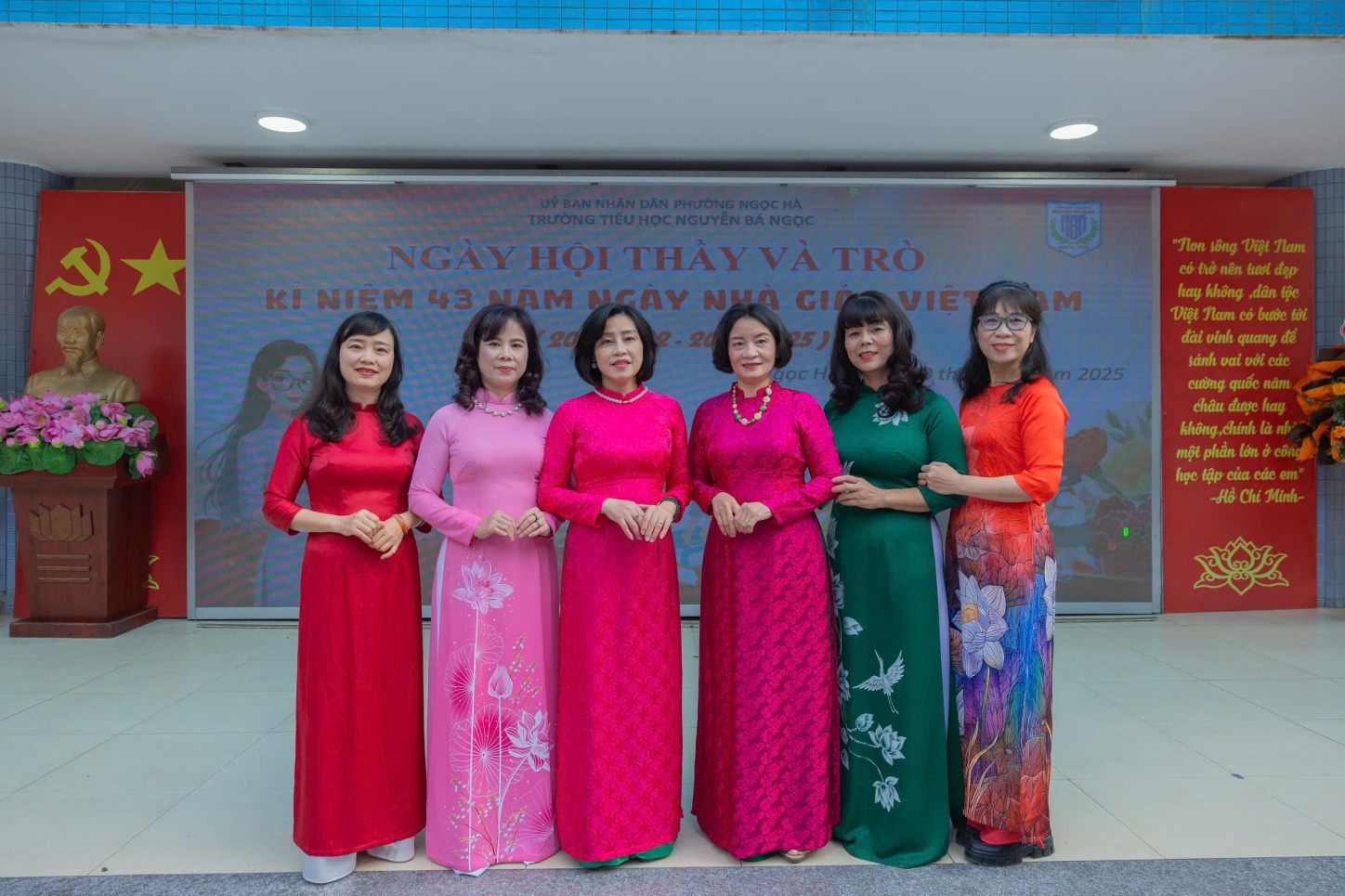 Nụ cười rạng rỡ cùng tà áo dài duyên dáng của thầy cô giáo trường Tiểu học Nguyễn Bá Ngọc nhân ngày 20/11