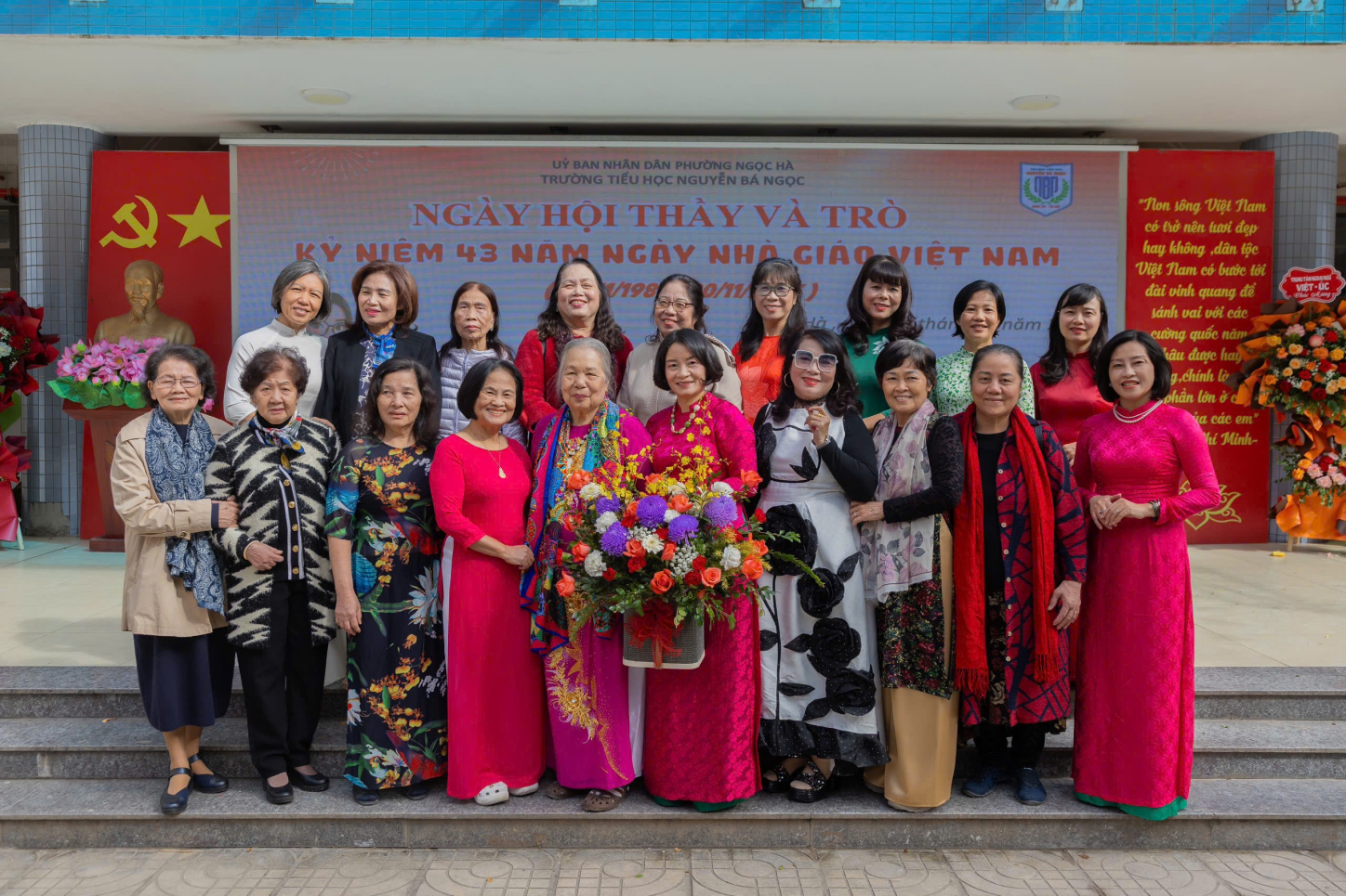 Một trong những khoảnh khắc xúc động và trang trọng nhất của buổi lễ là phần tặng hoa và phát biểu của các cựu giáo chức – những người đã dành cả cuộc đời cống hiến cho mái trường Nguyễn Bá Ngọc. Trong lời phát biểu đầy xúc động, đại diện cựu giáo chức chia sẻ niềm vui khi được trở lại mái trường thân yêu, được gặp lại đồng nghiệp và các con học sinh trong không khí ấm áp của ngày 20/11.