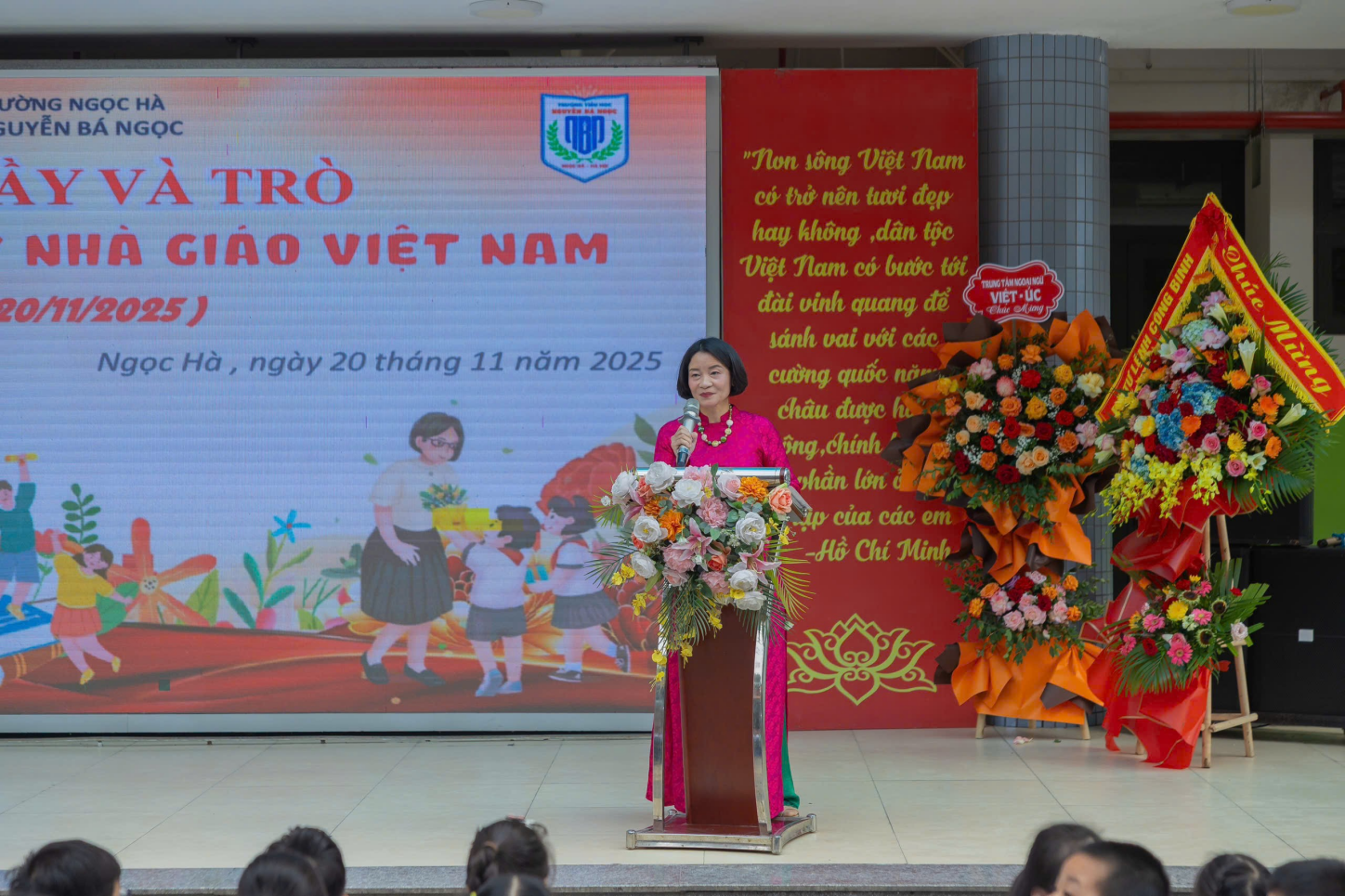Buổi lễ kỷ niệm chào mừng ngày Nhà giáo Việt Nam 20/11 của trường Tiểu học Nguyễn Bá Ngọc đã để lại nhiều ấn tượng đẹp, góp phần khơi dậy niềm tự hào, động lực và tinh thần cống hiến đối với mỗi cán bộ, giáo viên và học sinh. Buổi lễ không chỉ là dịp để tôn vinh những cống hiến thầm lặng của các thầy cô – những người đã miệt mài vun trồng tri thức, mà còn là cơ hội để mỗi học sinh thể hiện lòng biết ơn, sự kính trọng đối với những người dẫn dắt mình trên con đường học tập và trưởng thành.
