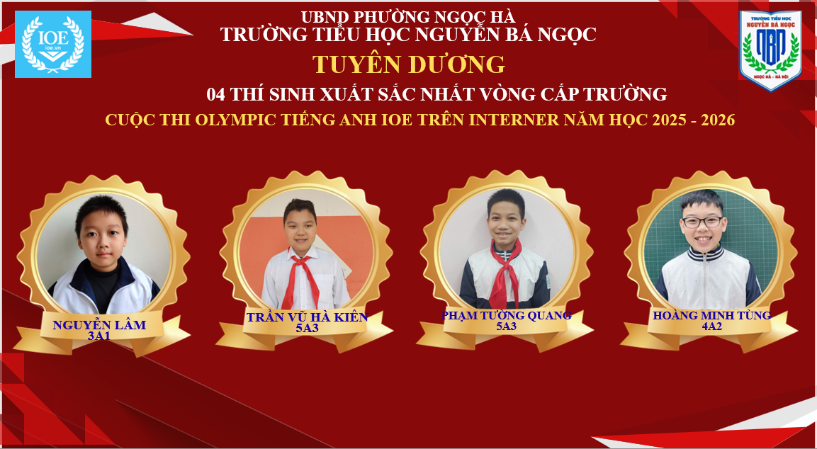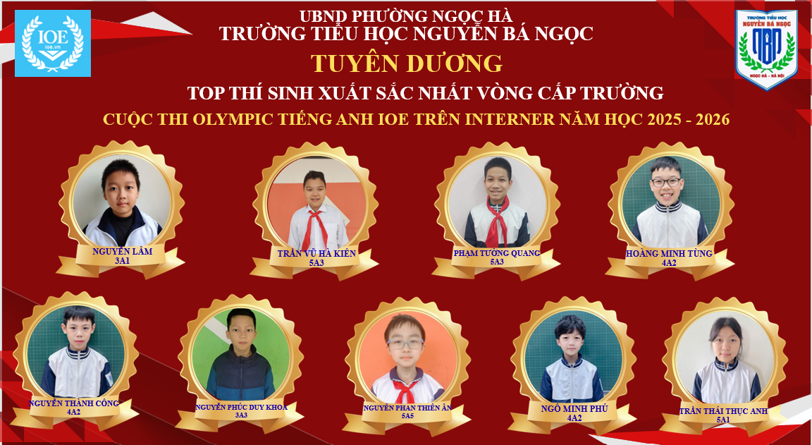 Nhà trường xin chúc mừng và biểu dương các em học sinh đạt giải, đồng thời hy vọng rằng trong thời gian tới, phong trào học tập tiếng Anh và tham gia các sân chơi trí tuệ như IOE sẽ tiếp tục được lan tỏa mạnh mẽ, góp phần nâng cao chất lượng giáo dục toàn diện cho học sinh.